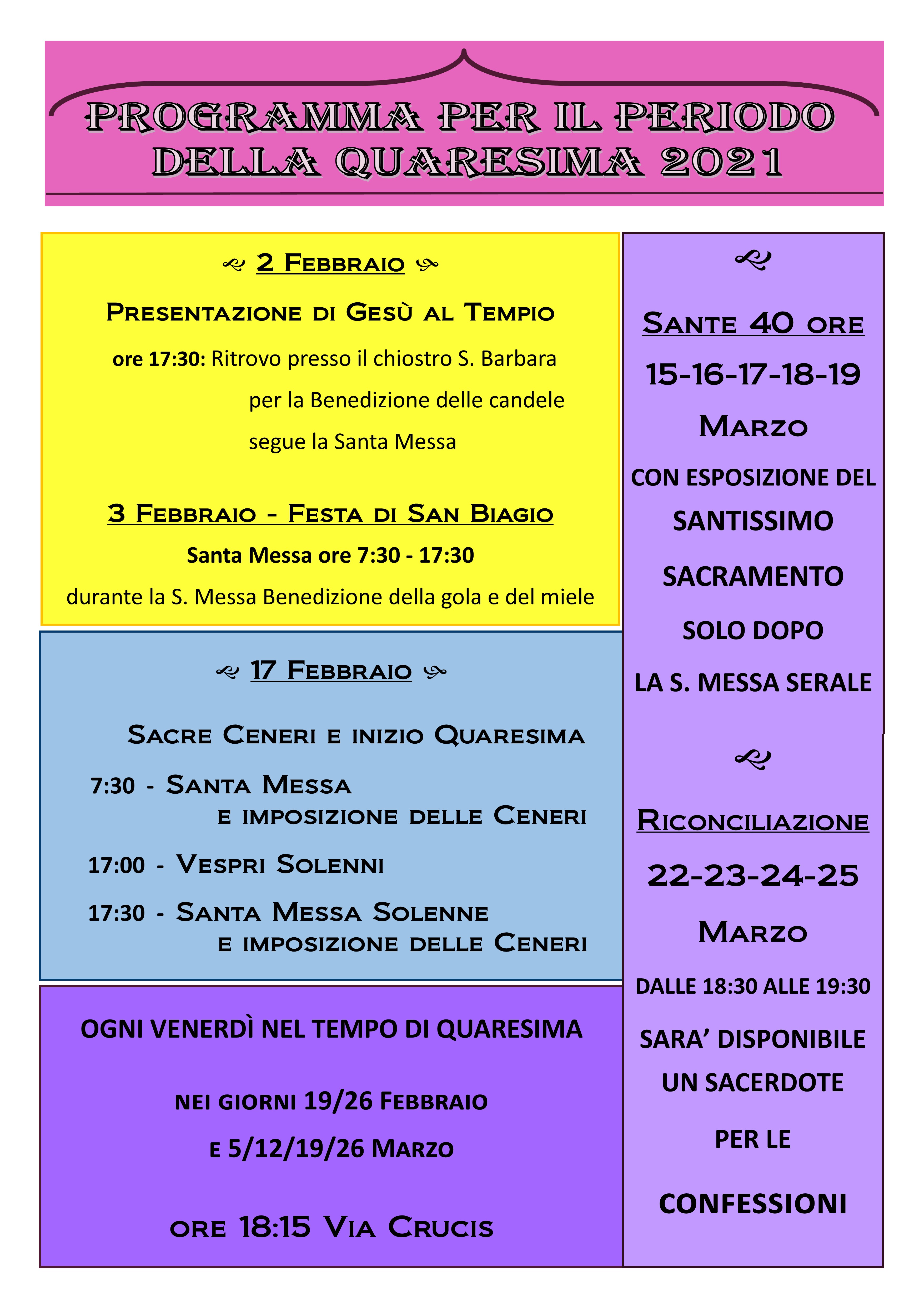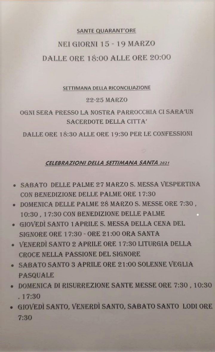 L’orario della Santa Messa serale fino al 30 Aprile sarà alle 17:30
