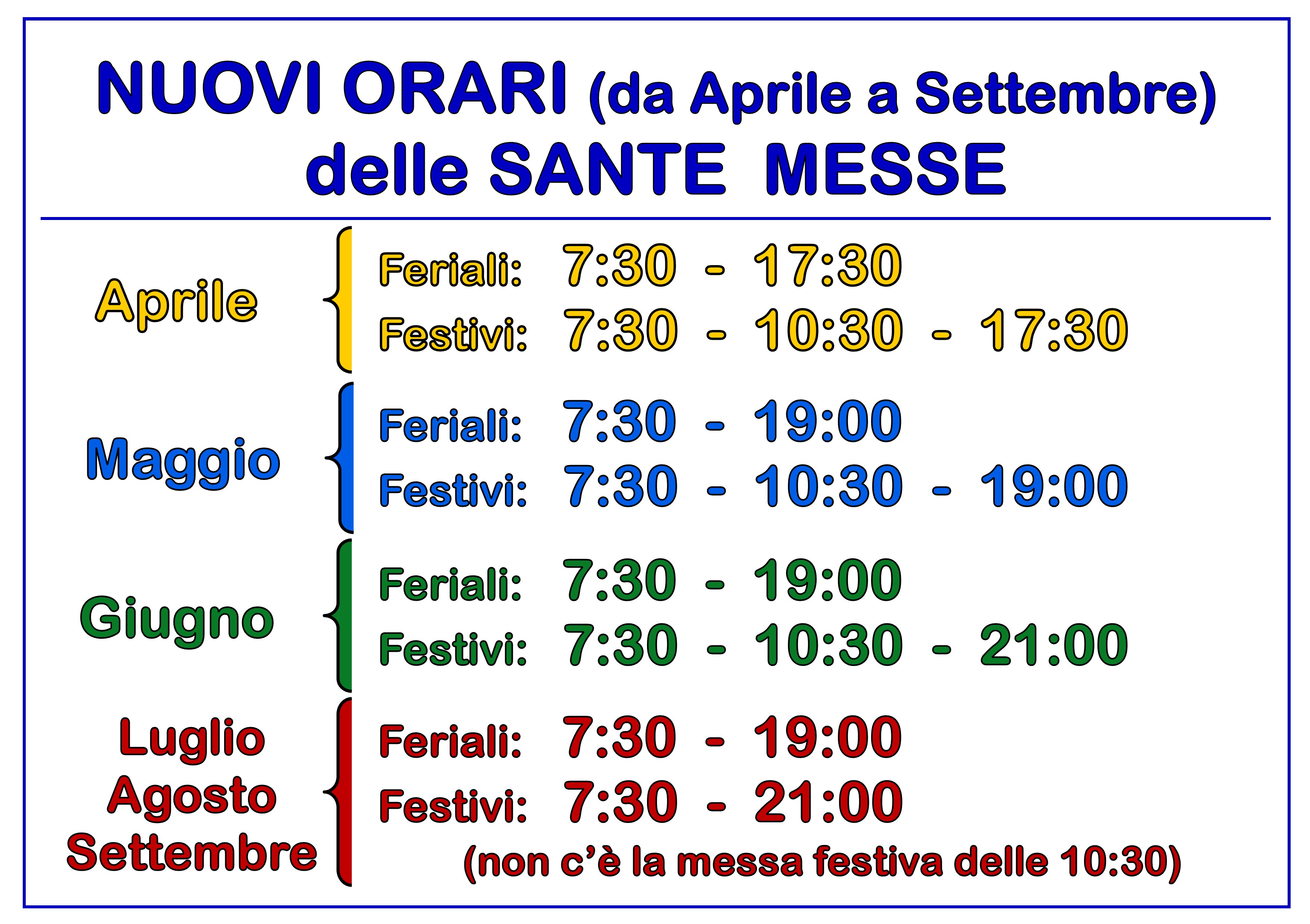 NUOVI ORARI delle MESSE periodo GIUGNO/SETTEMBRE 2022