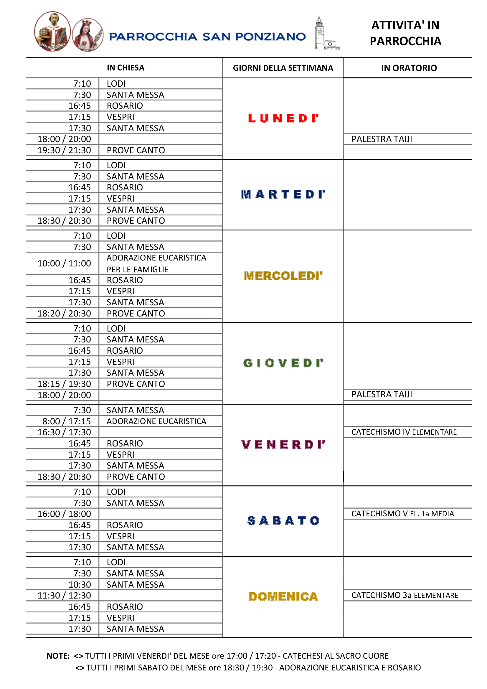 TUTTI I GIORNI7:10 LODI;16:45 ROSARIO;17:15 VESPRI |
