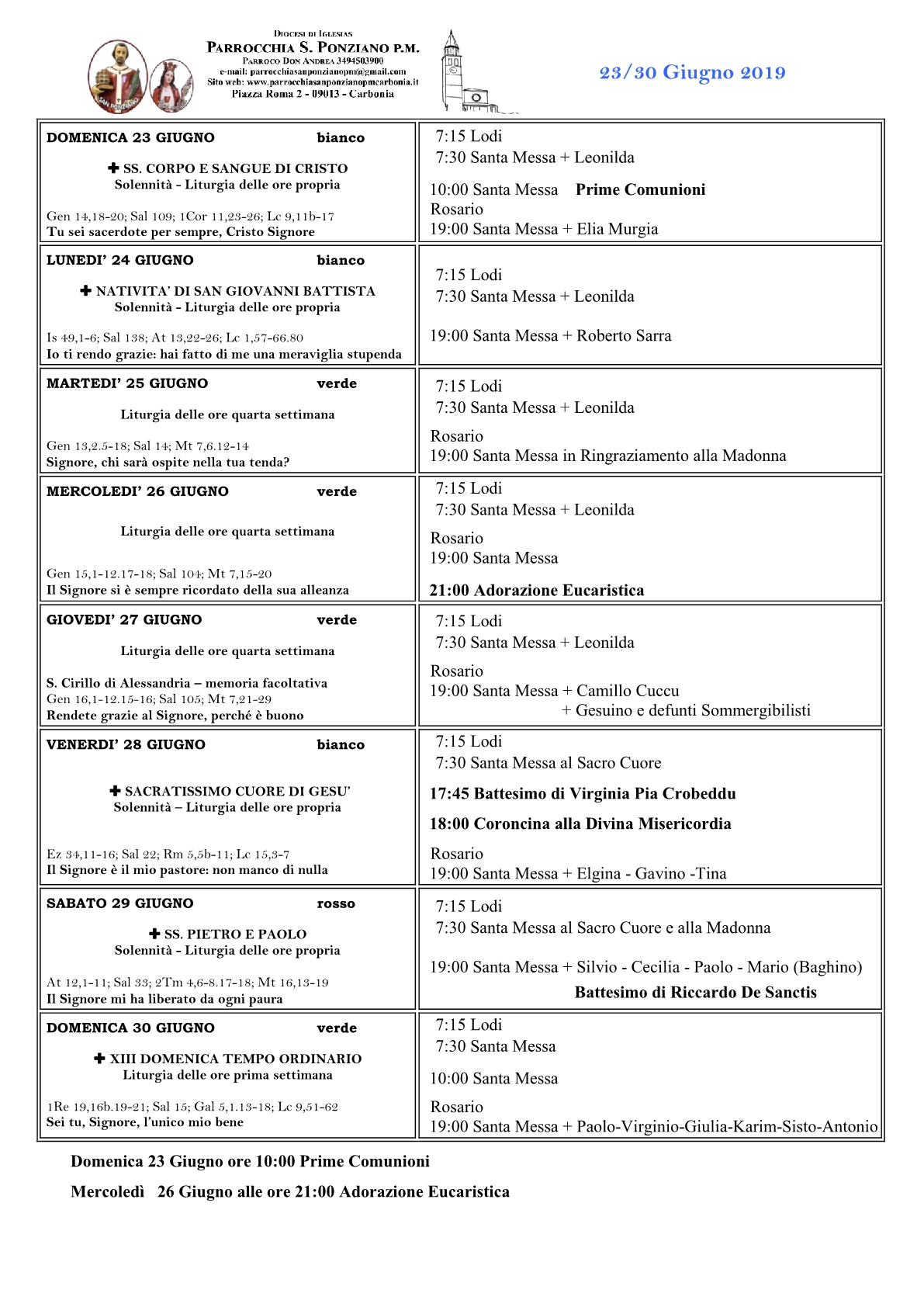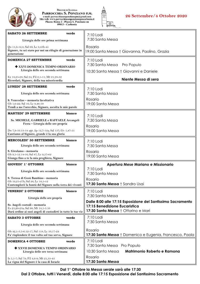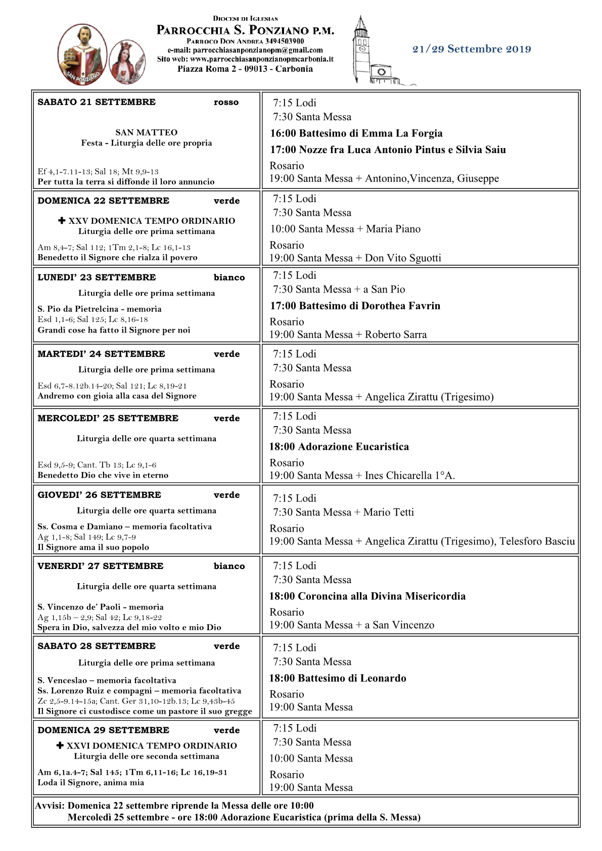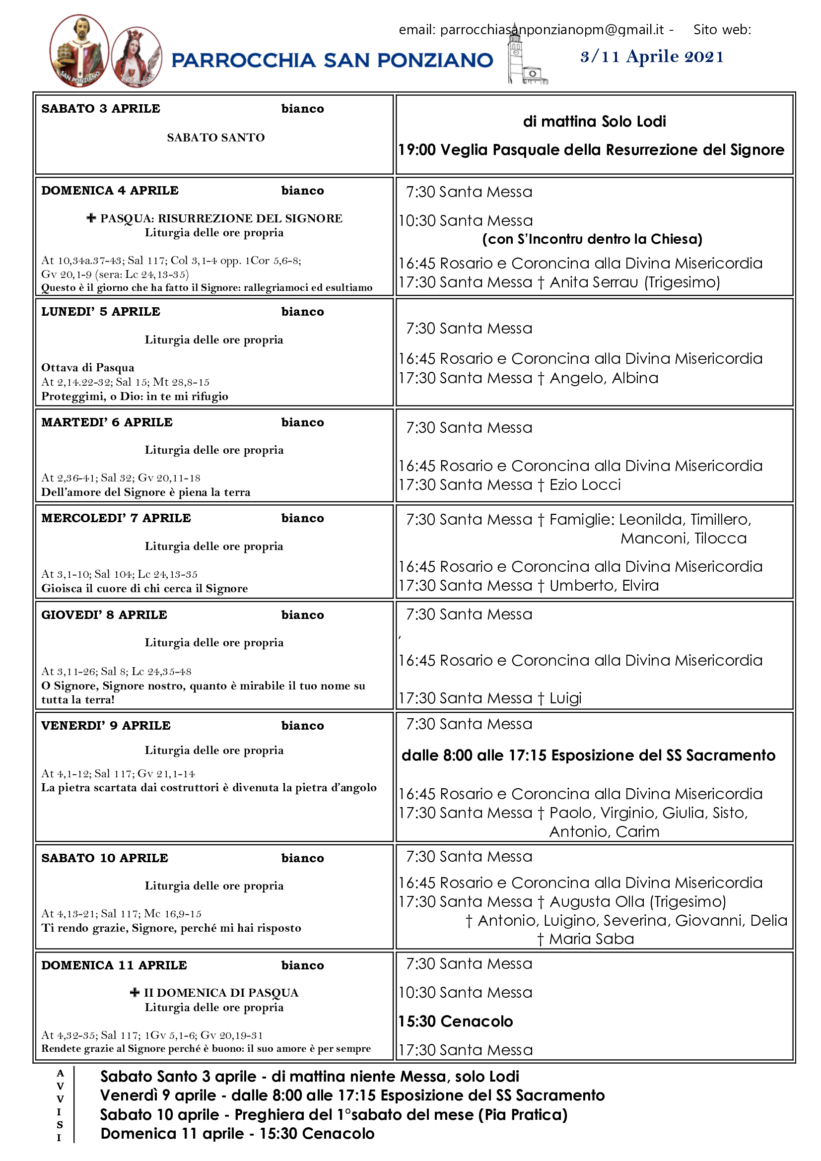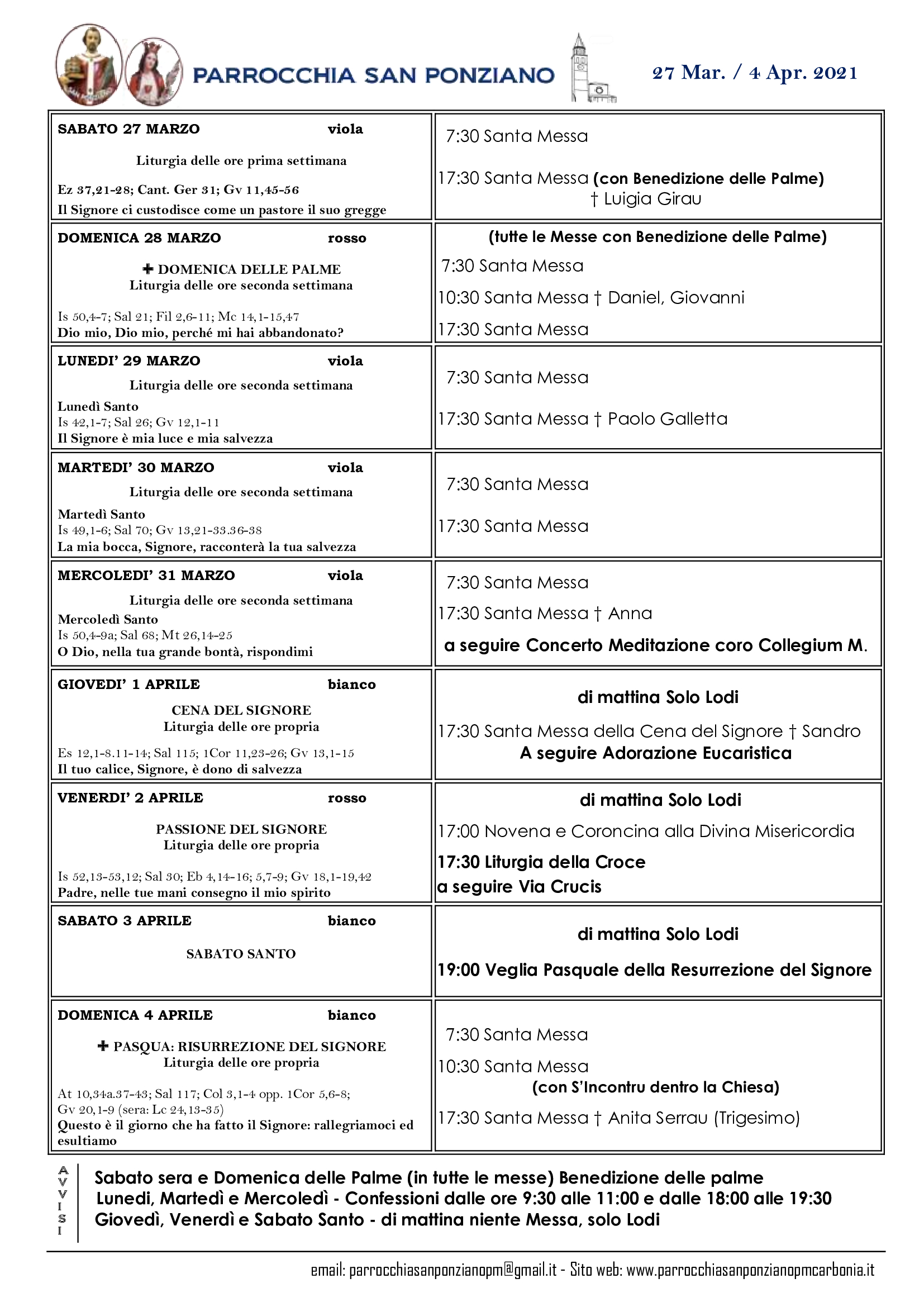 7:10 LODI; 16:30 ROSARIO; 17:45 VESPRI
