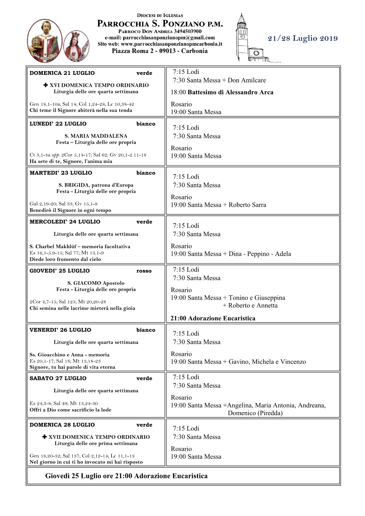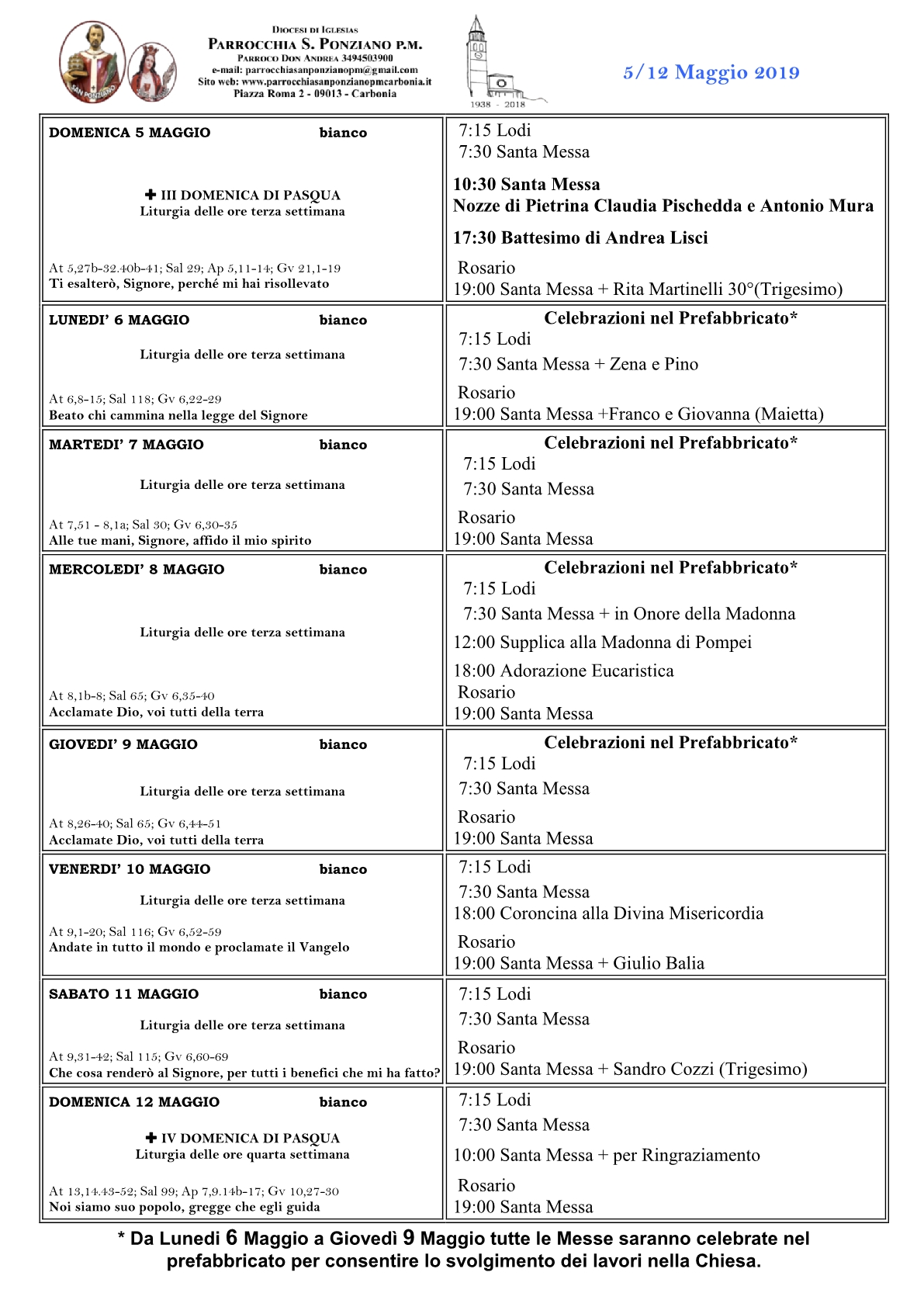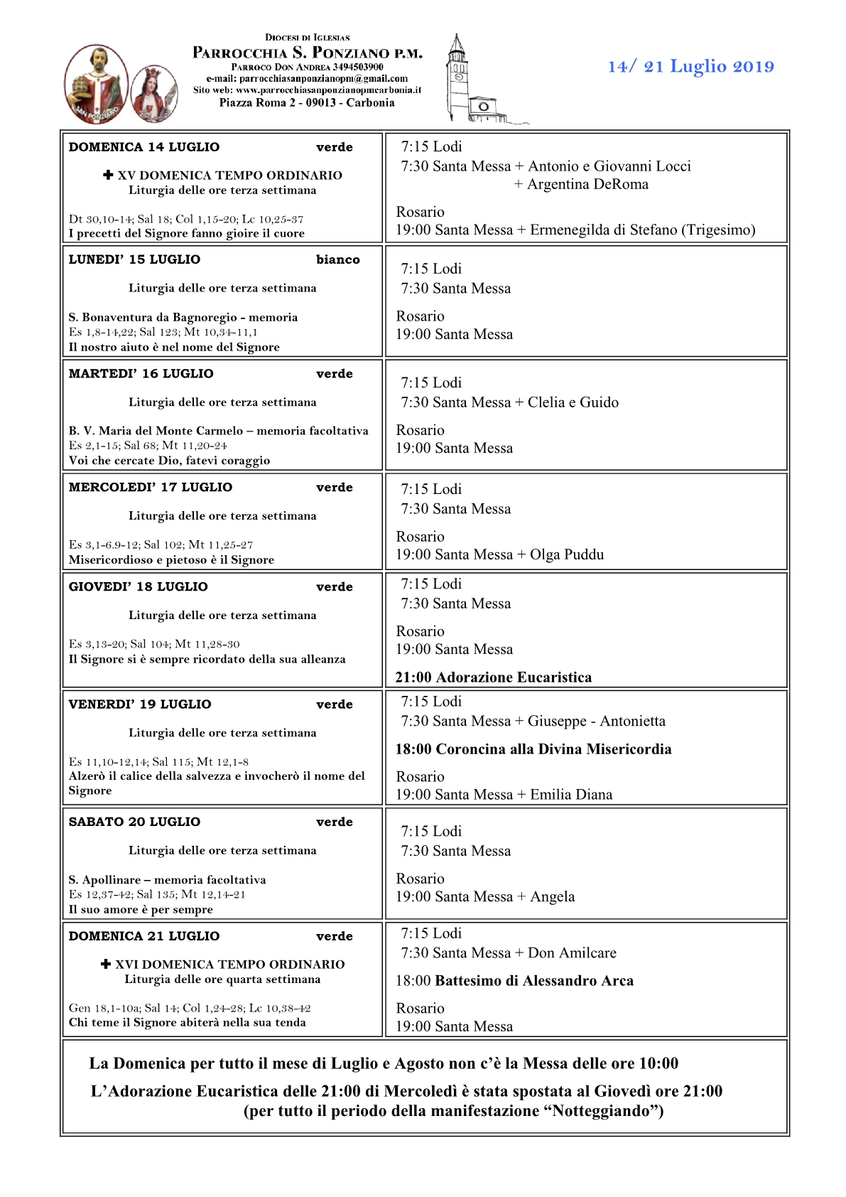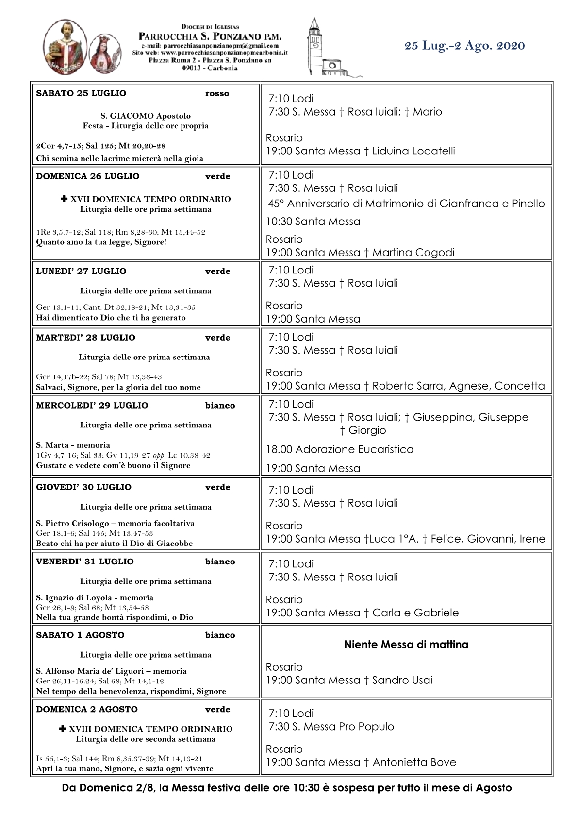 7:10 LODI; 16:30 ROSARIO; 17:45 VESPRI