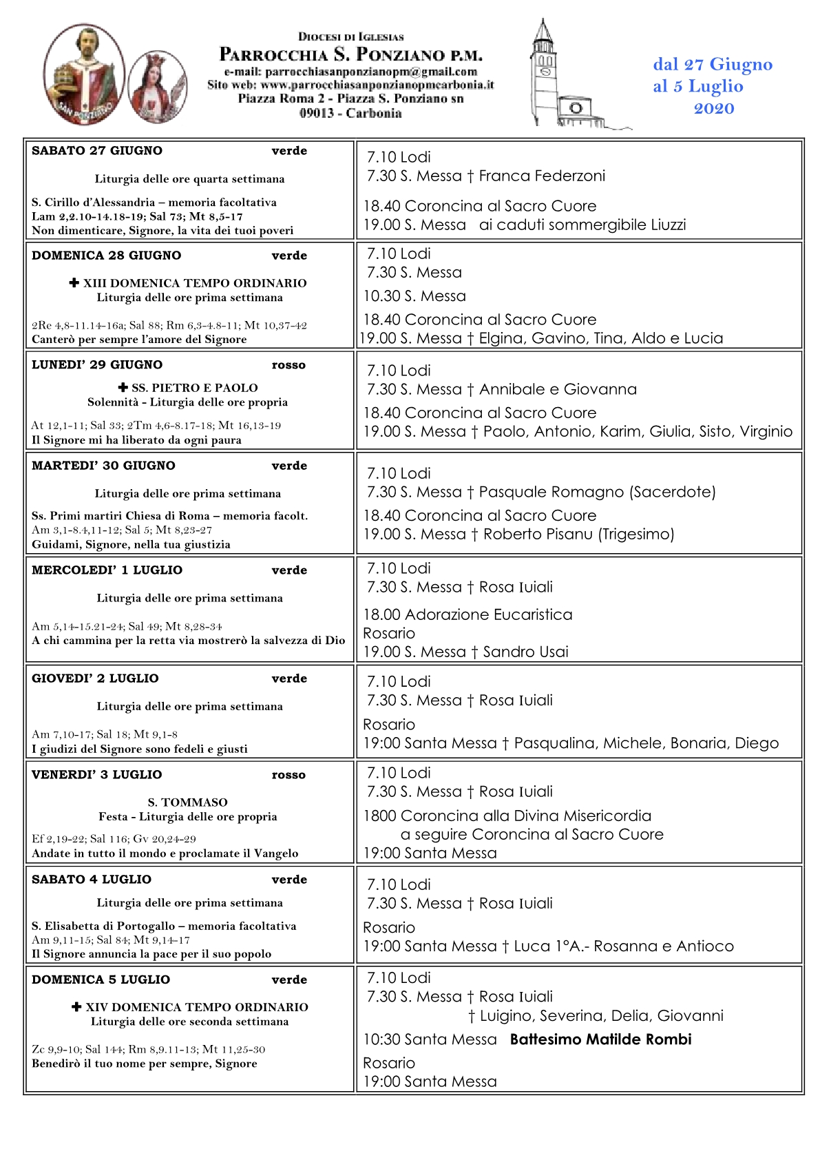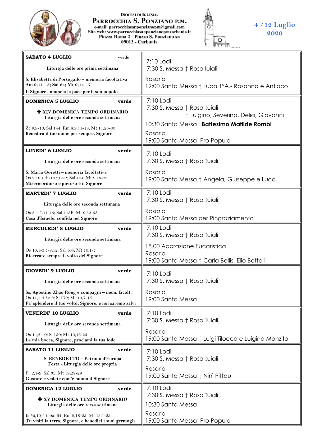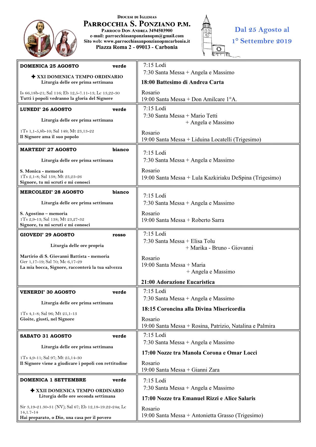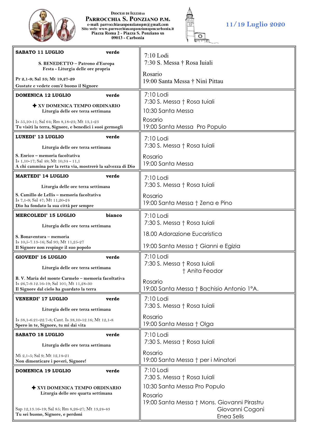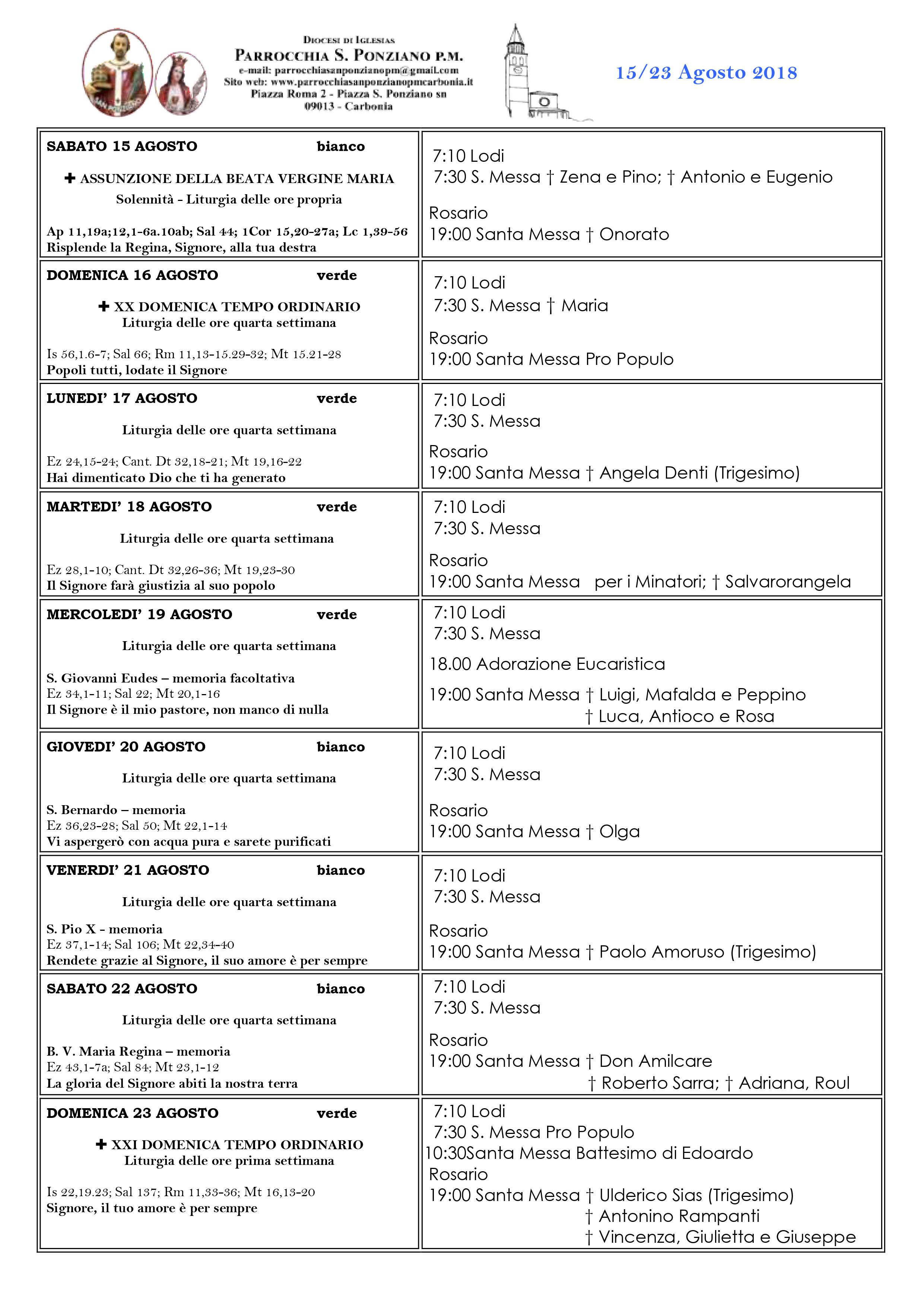 7:10 LODI; 16:30 ROSARIO; 17:45 VESPRI