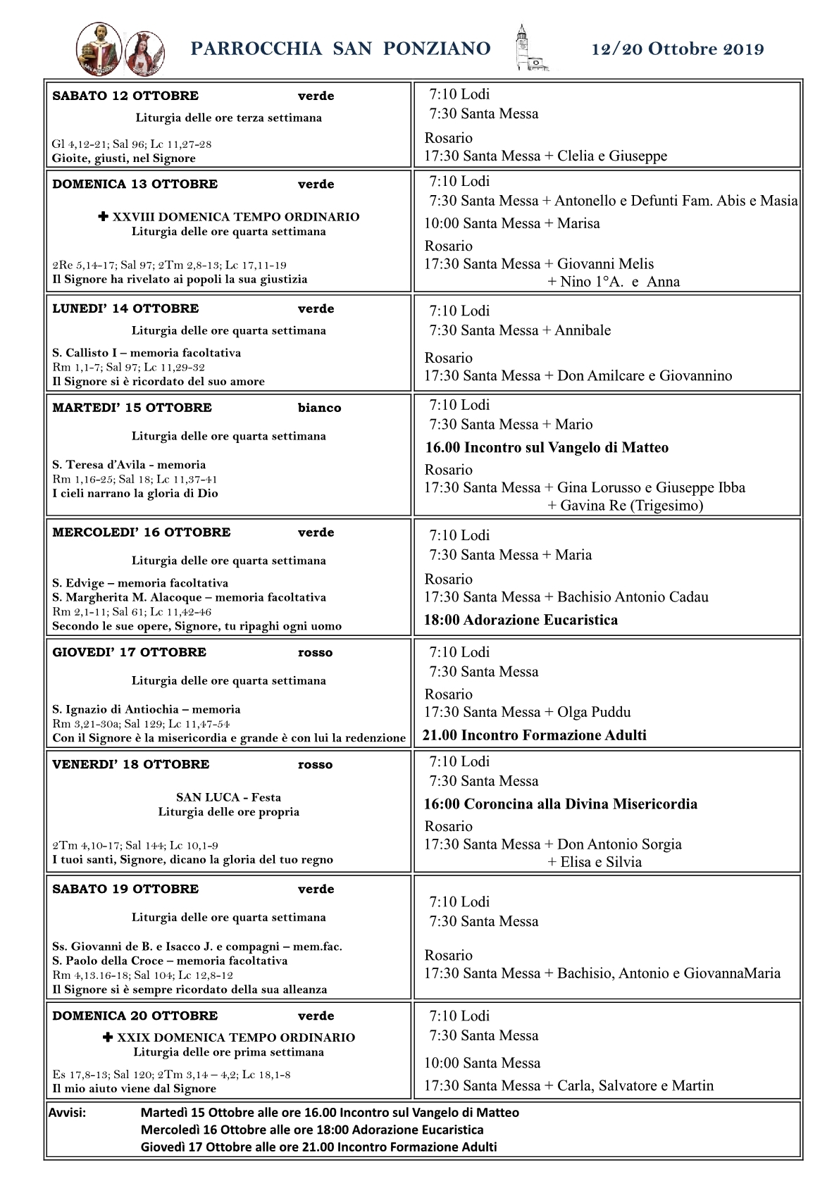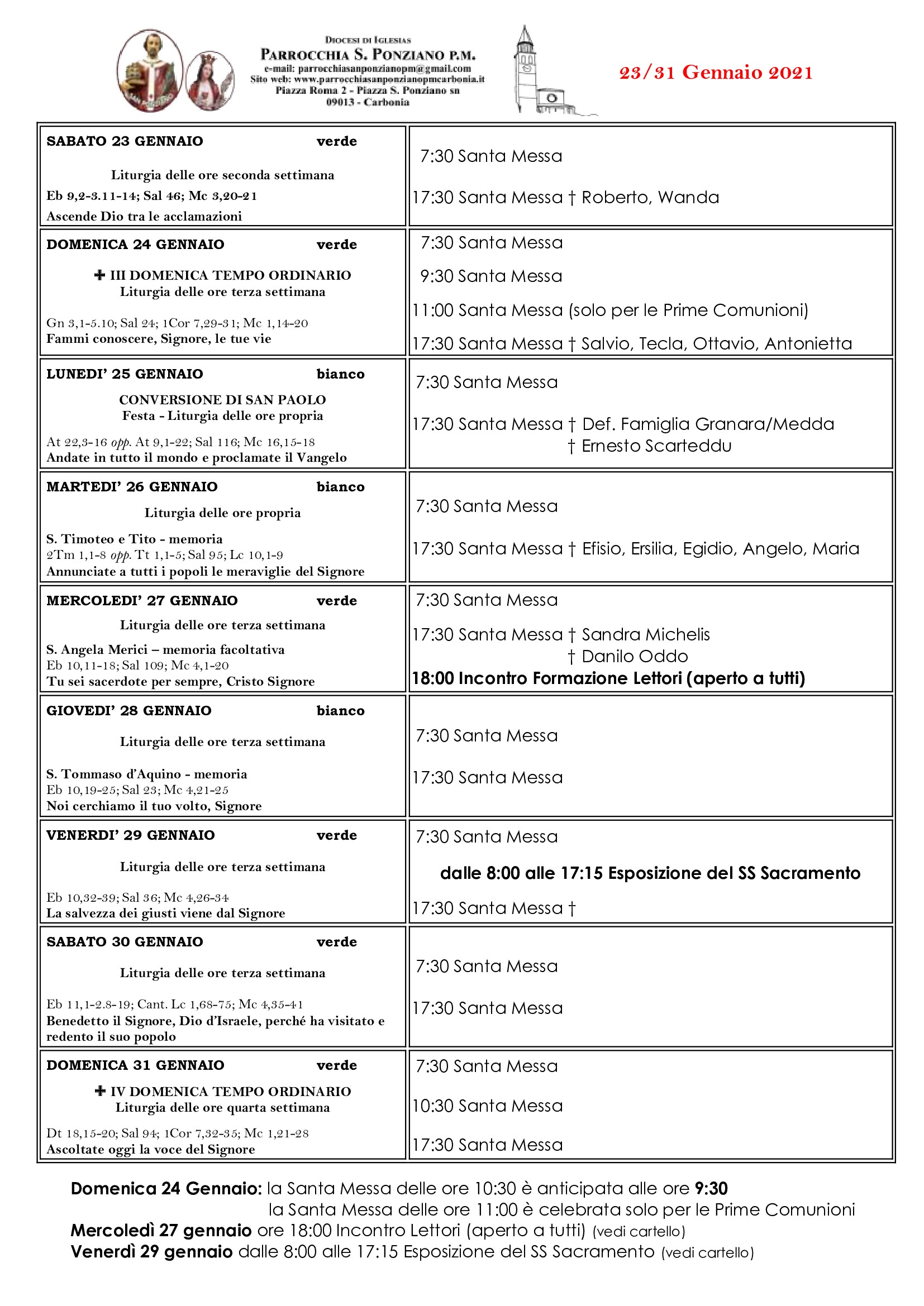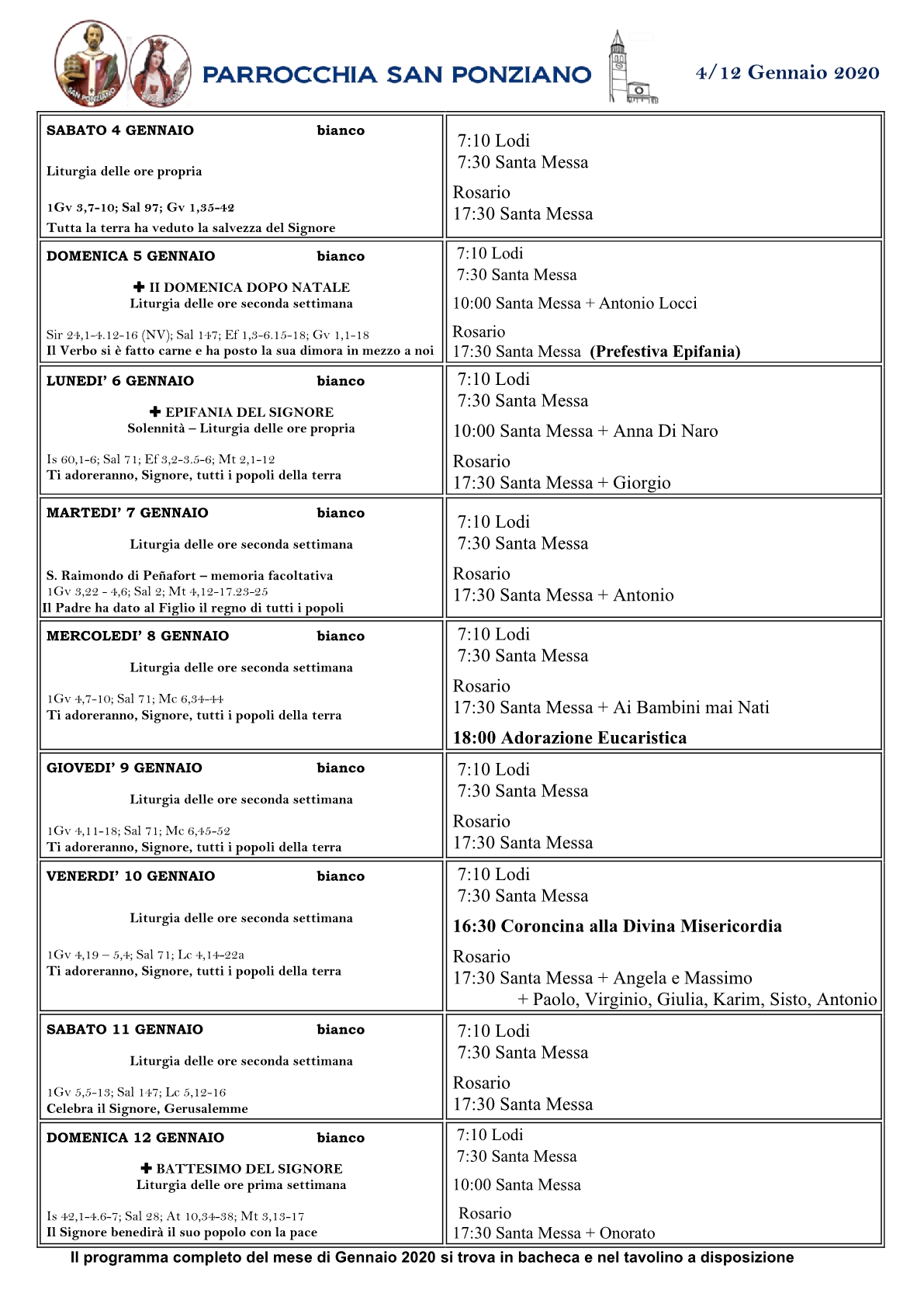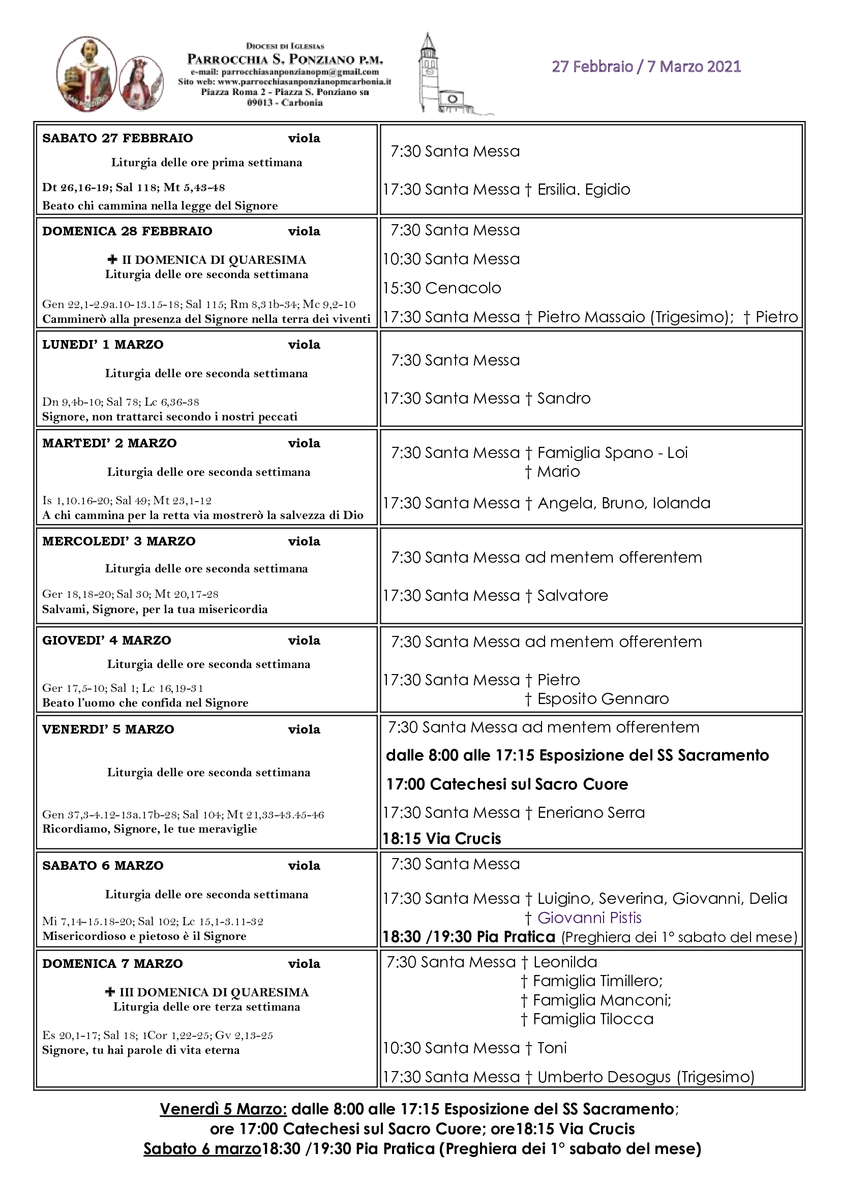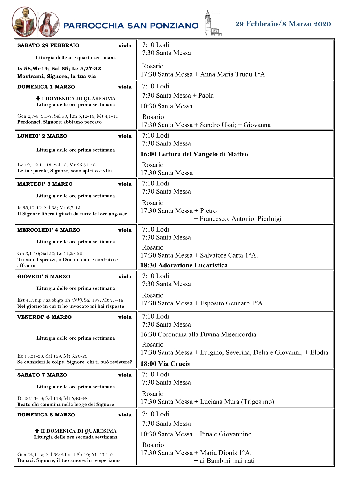 Avvisi della settimana (vedi programma incontri del mese Febbraio 2020 in bacheca)