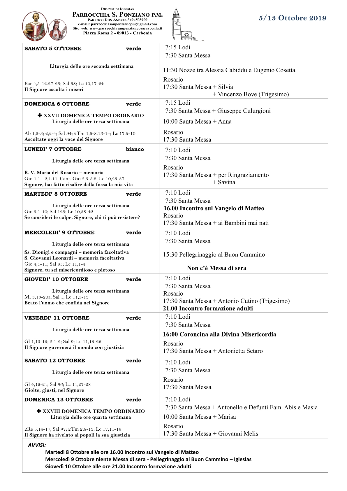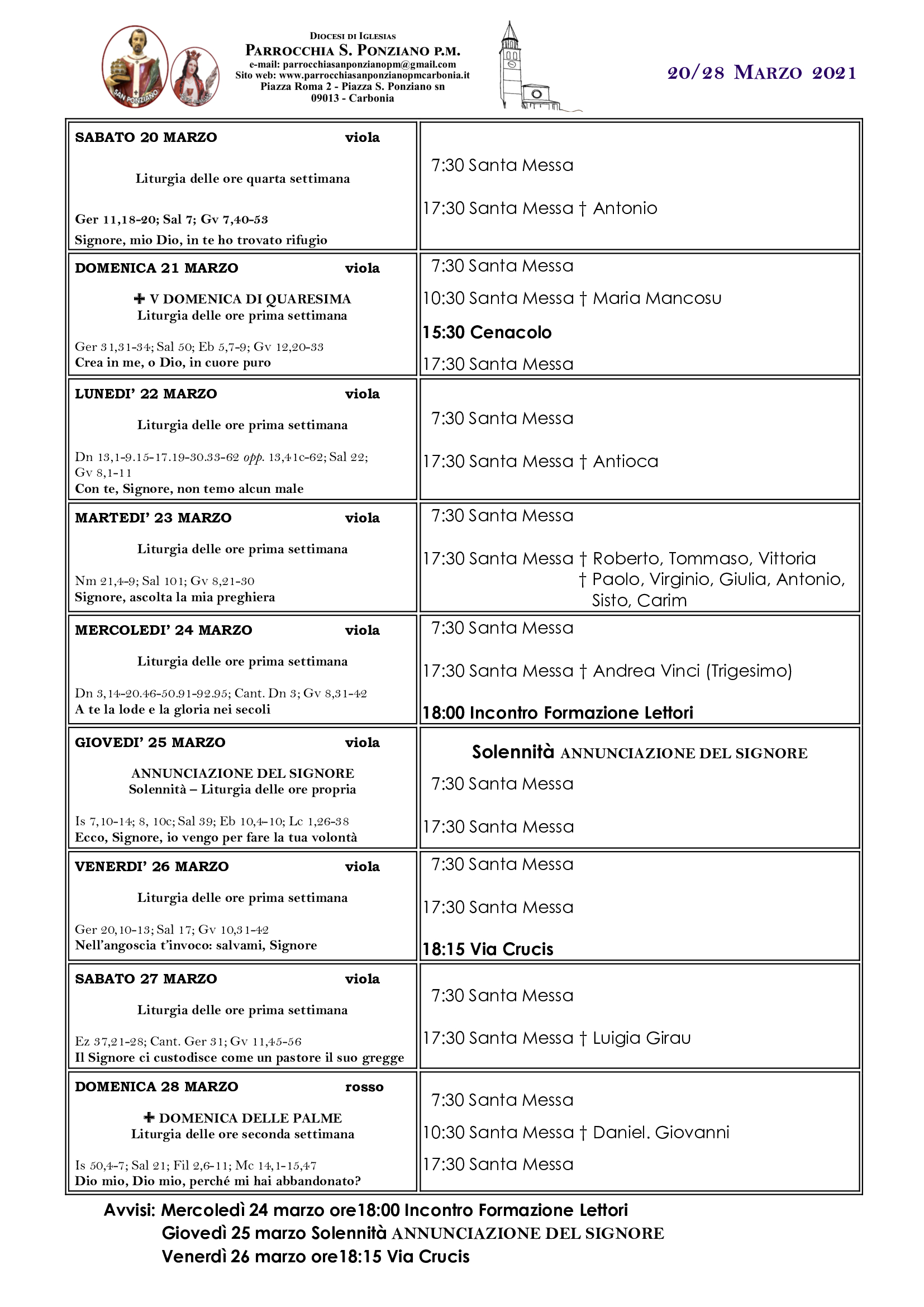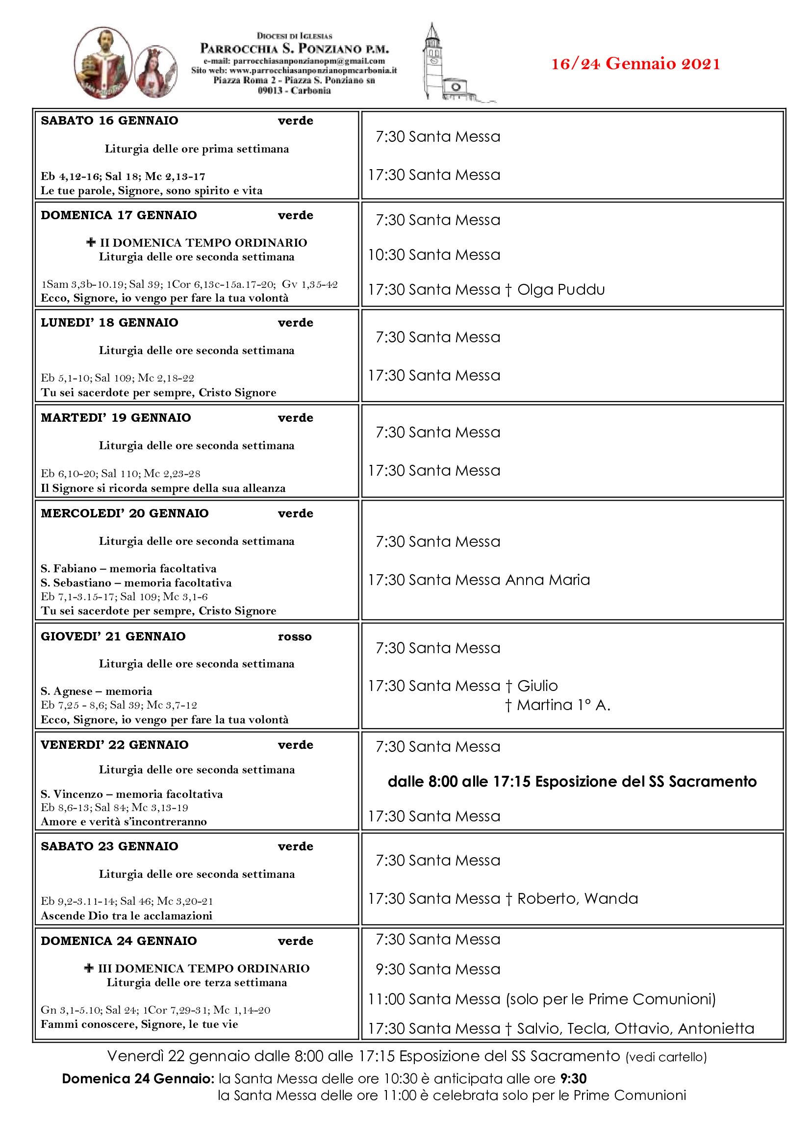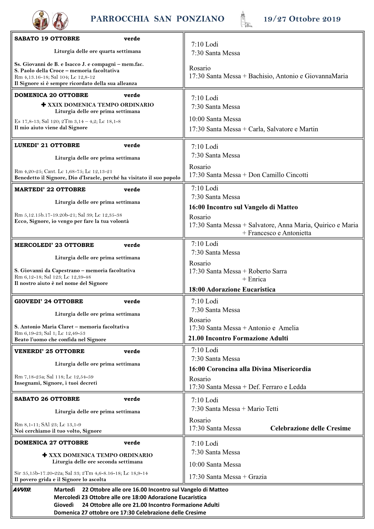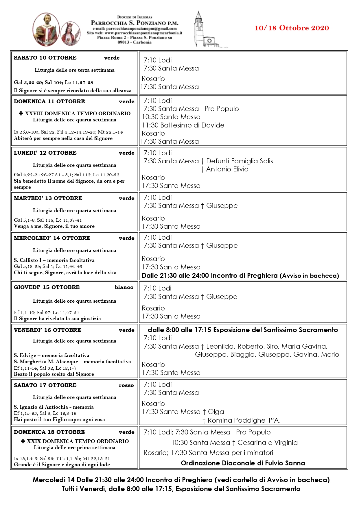 Avvisi della settimana (vedi programma incontri del mese Febbraio 2020 in bacheca)