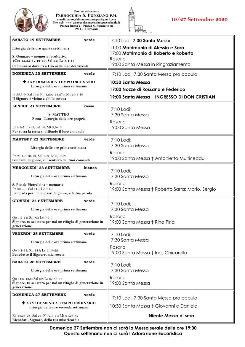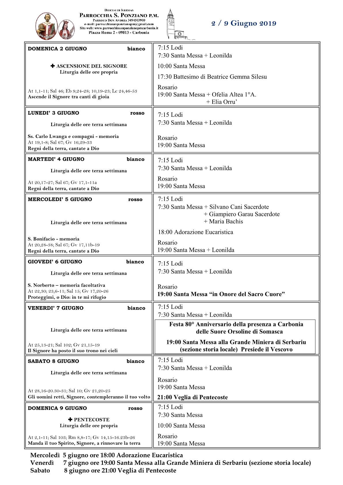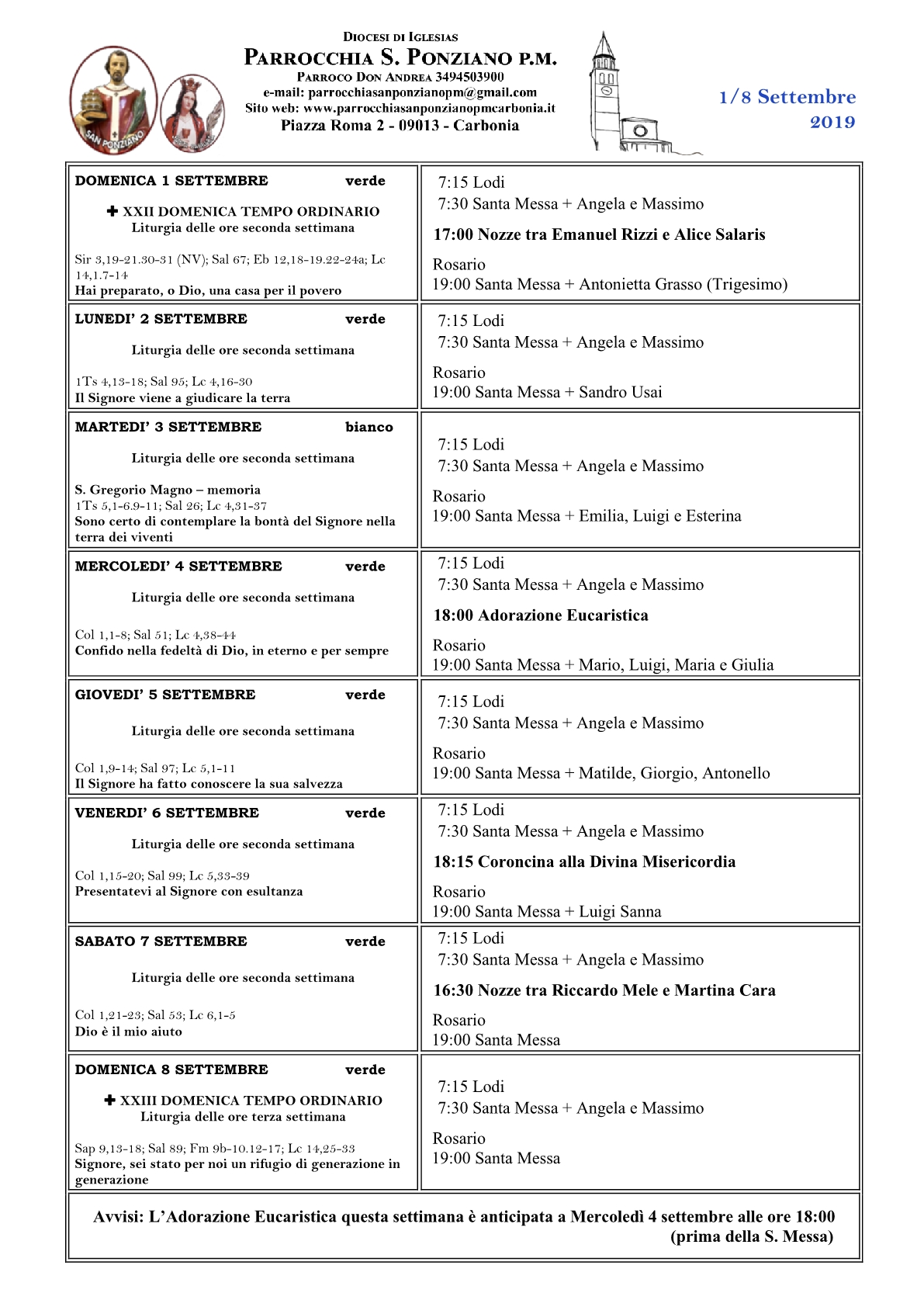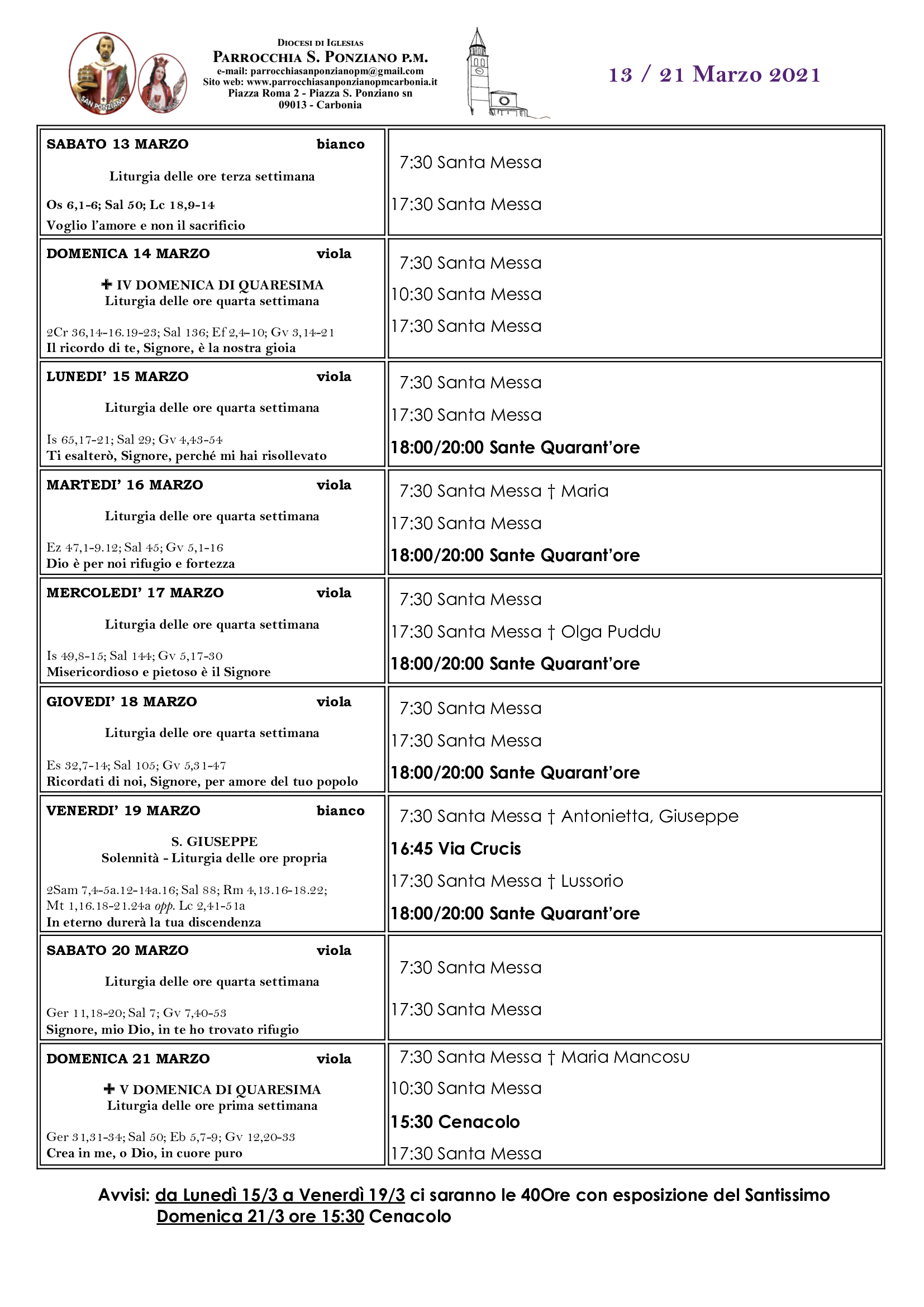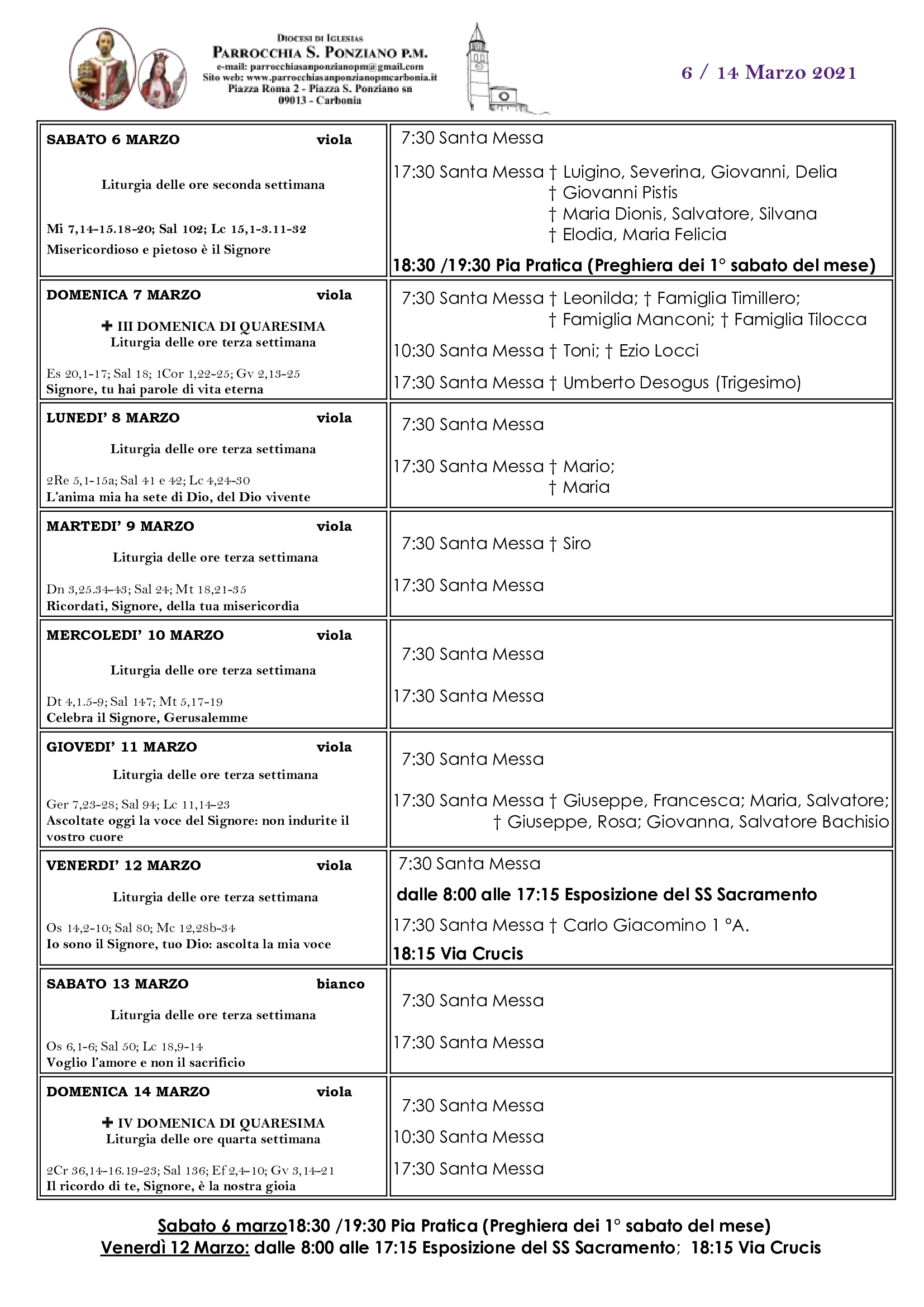 Avvisi della settimana (vedi programma incontri del mese Febbraio 2020 in bacheca)