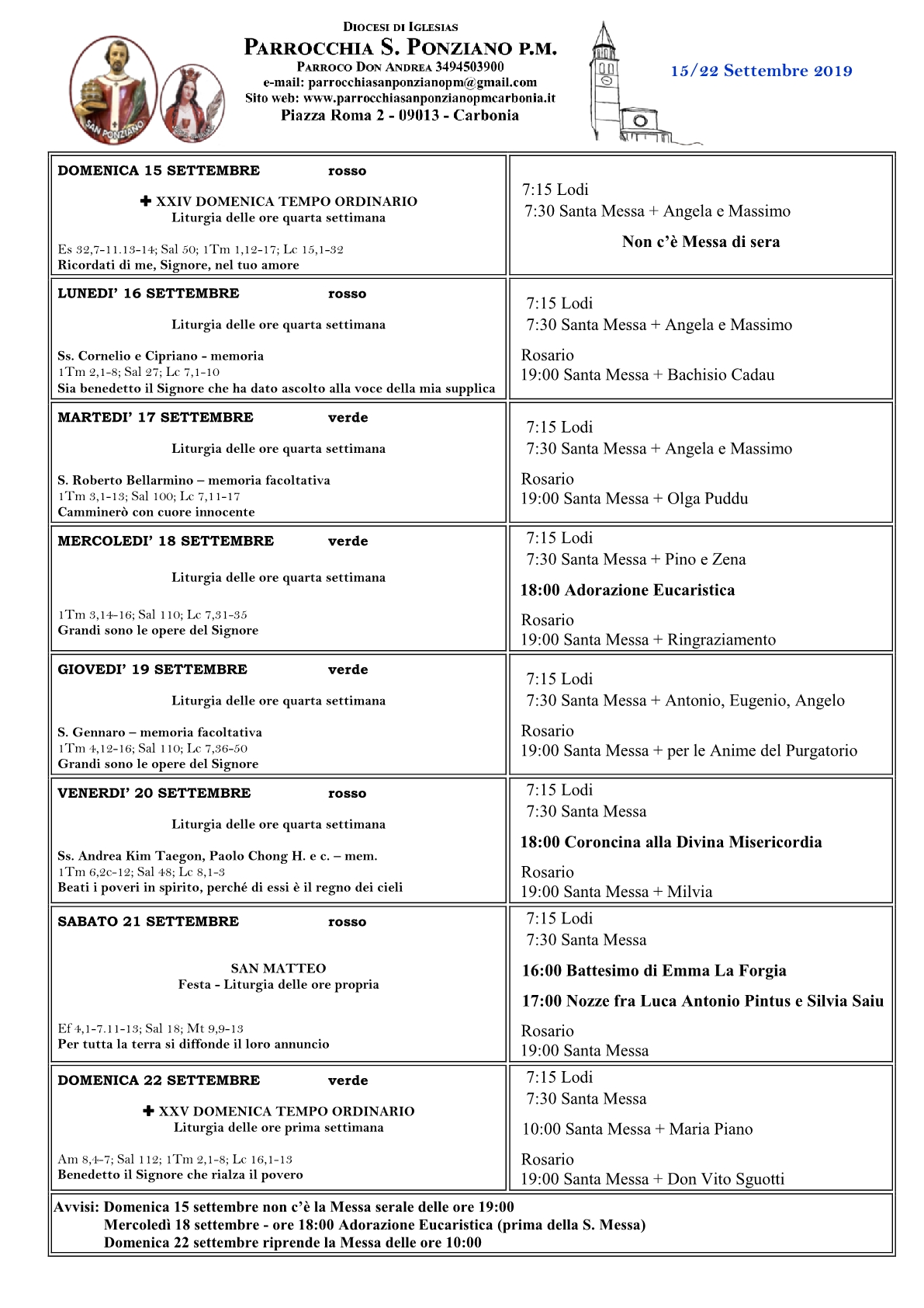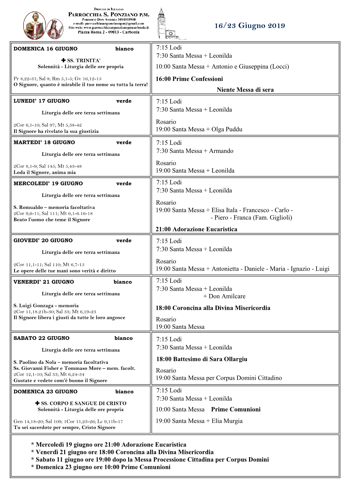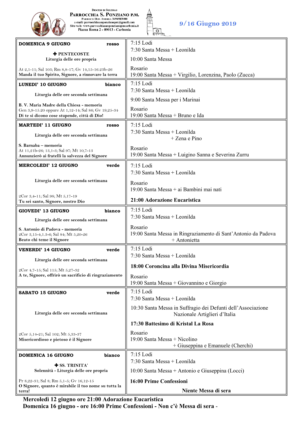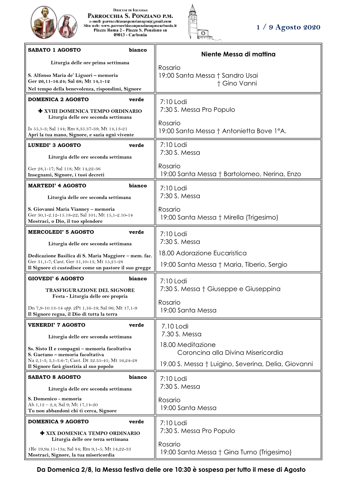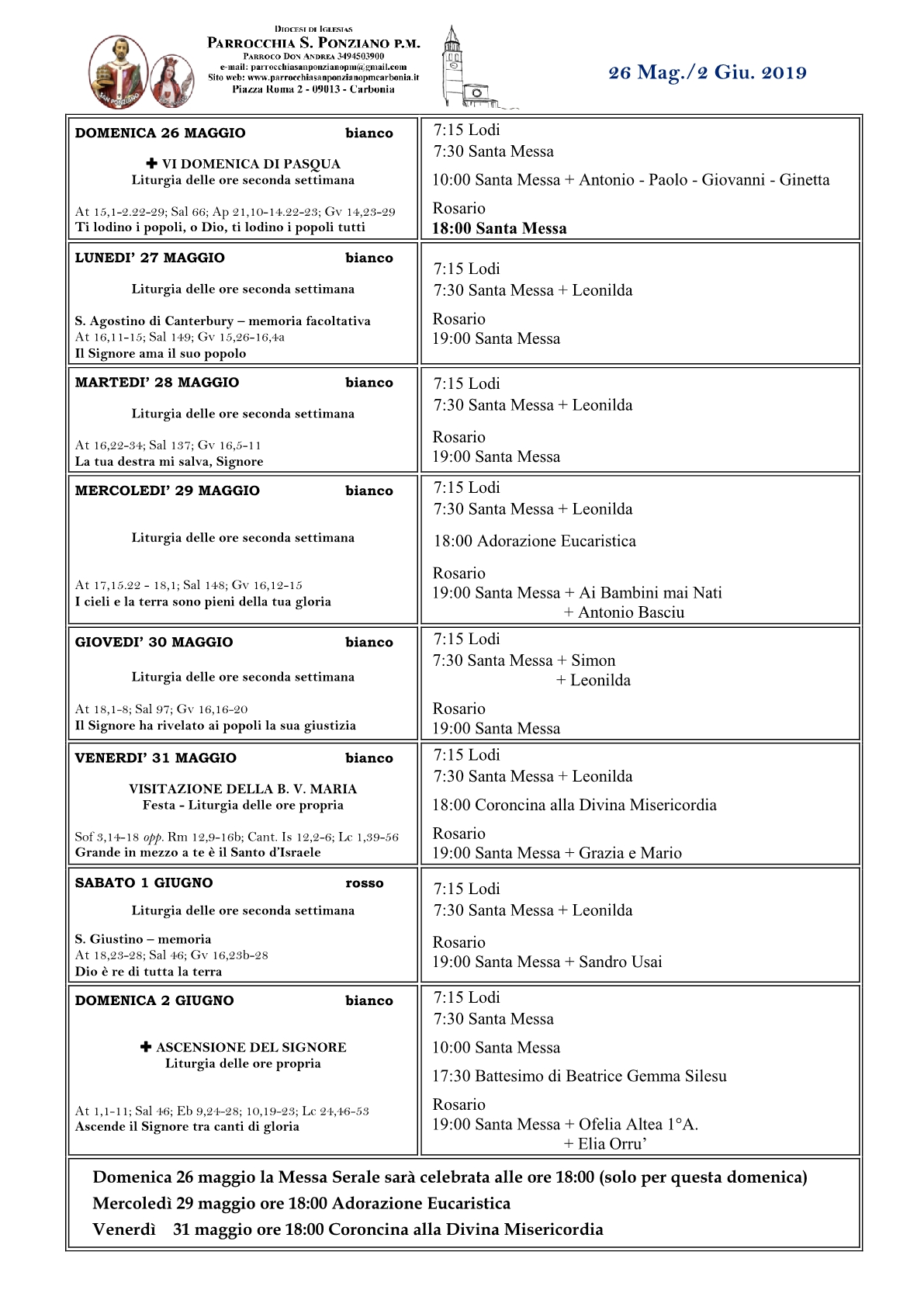 Avvisi della settimana (vedi programma incontri del mese Febbraio 2020 in bacheca)