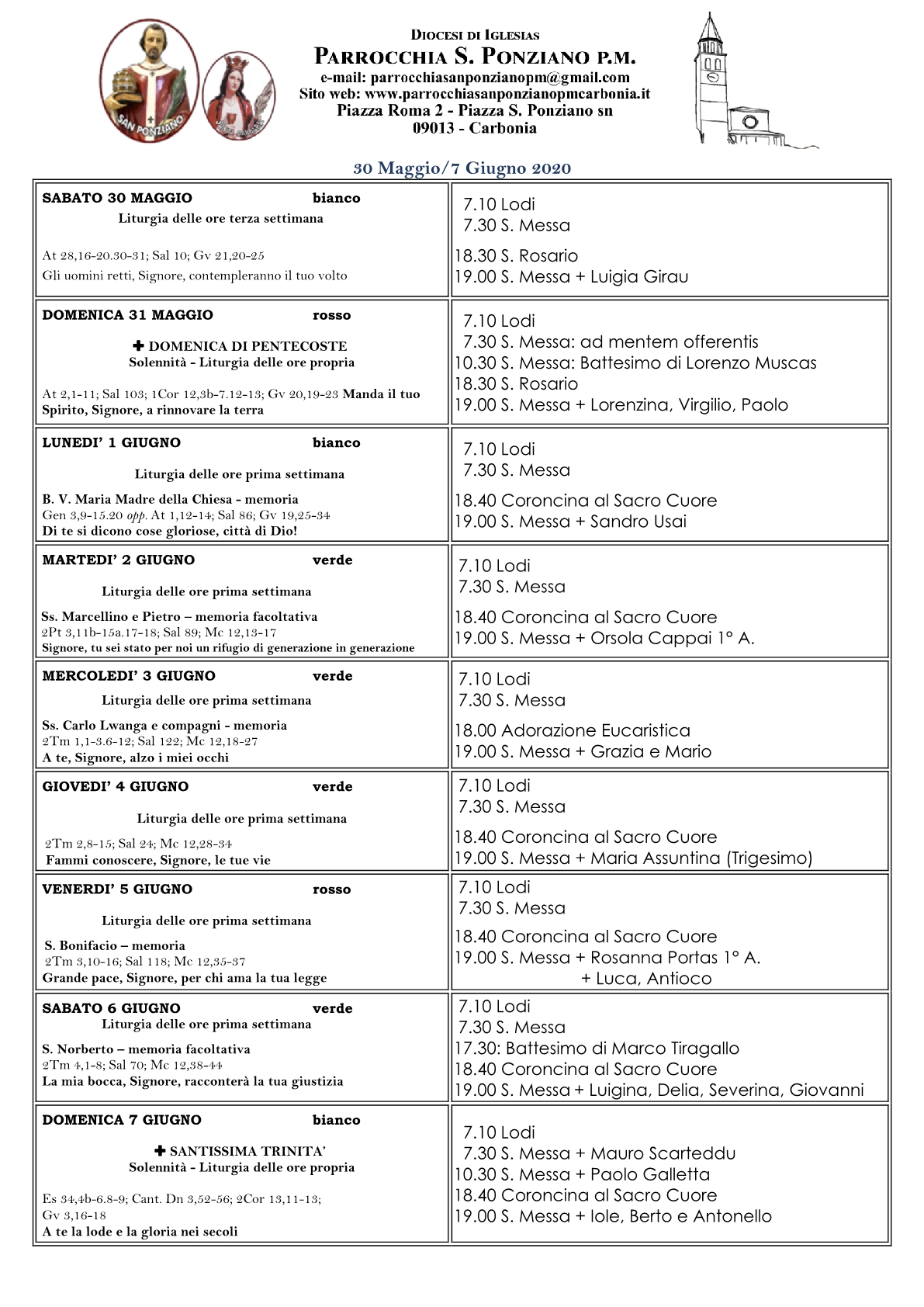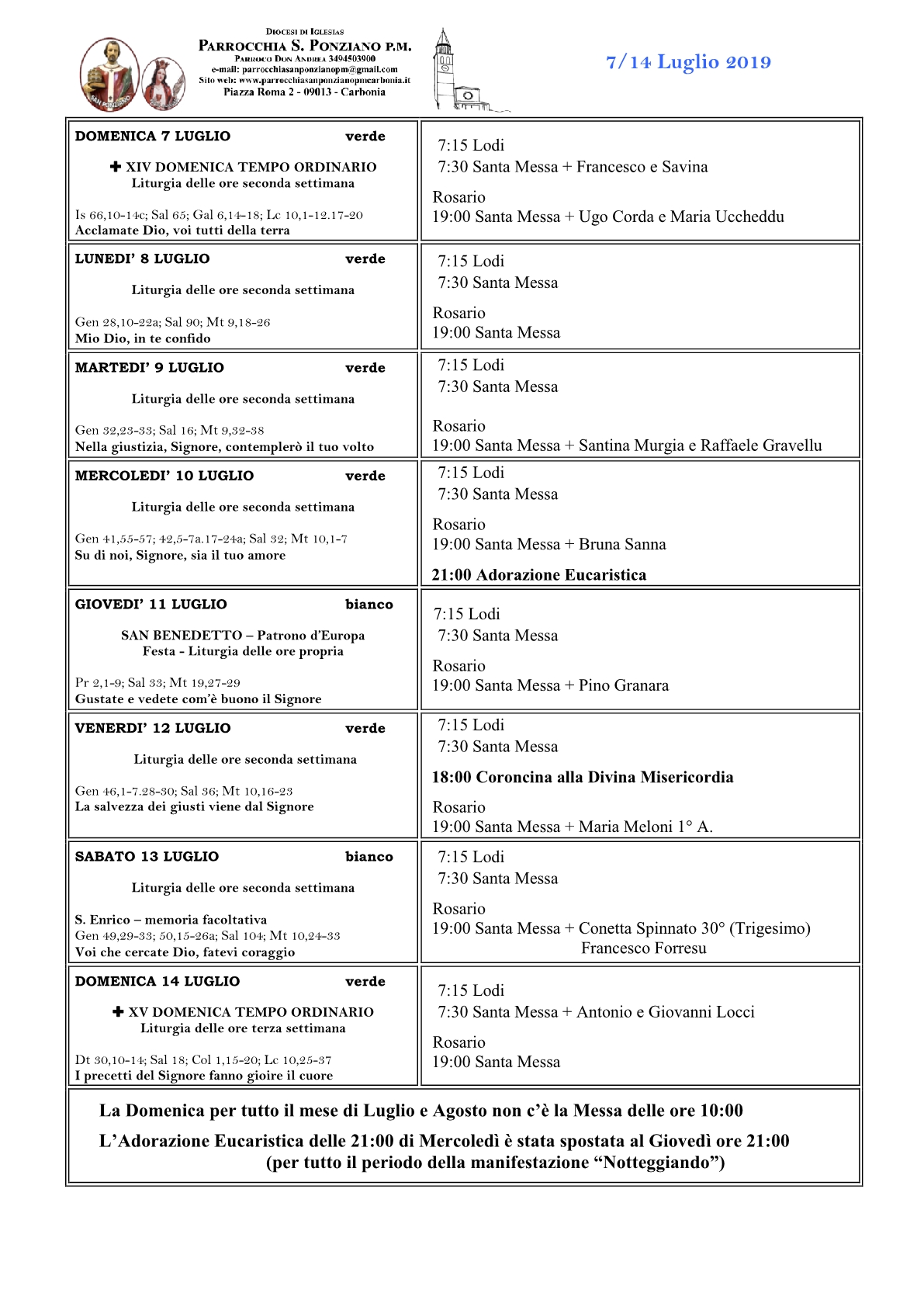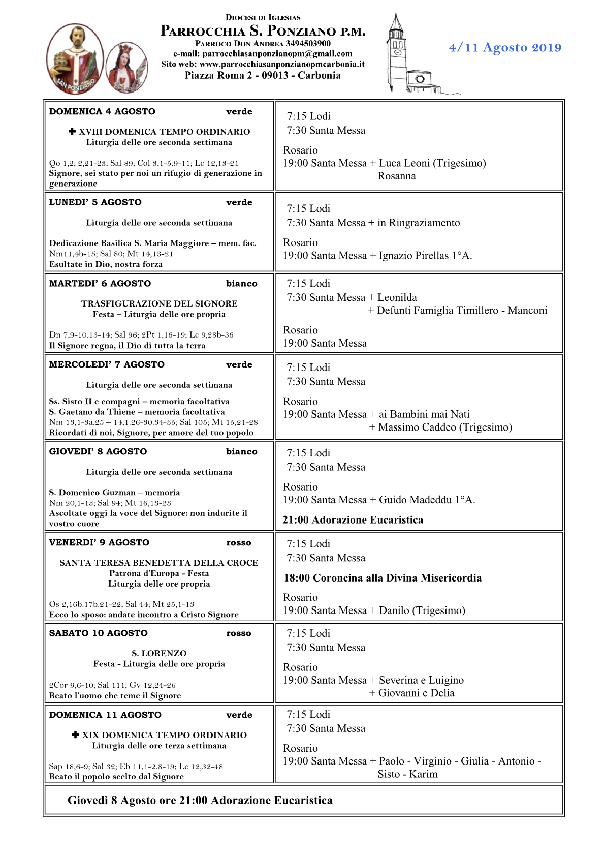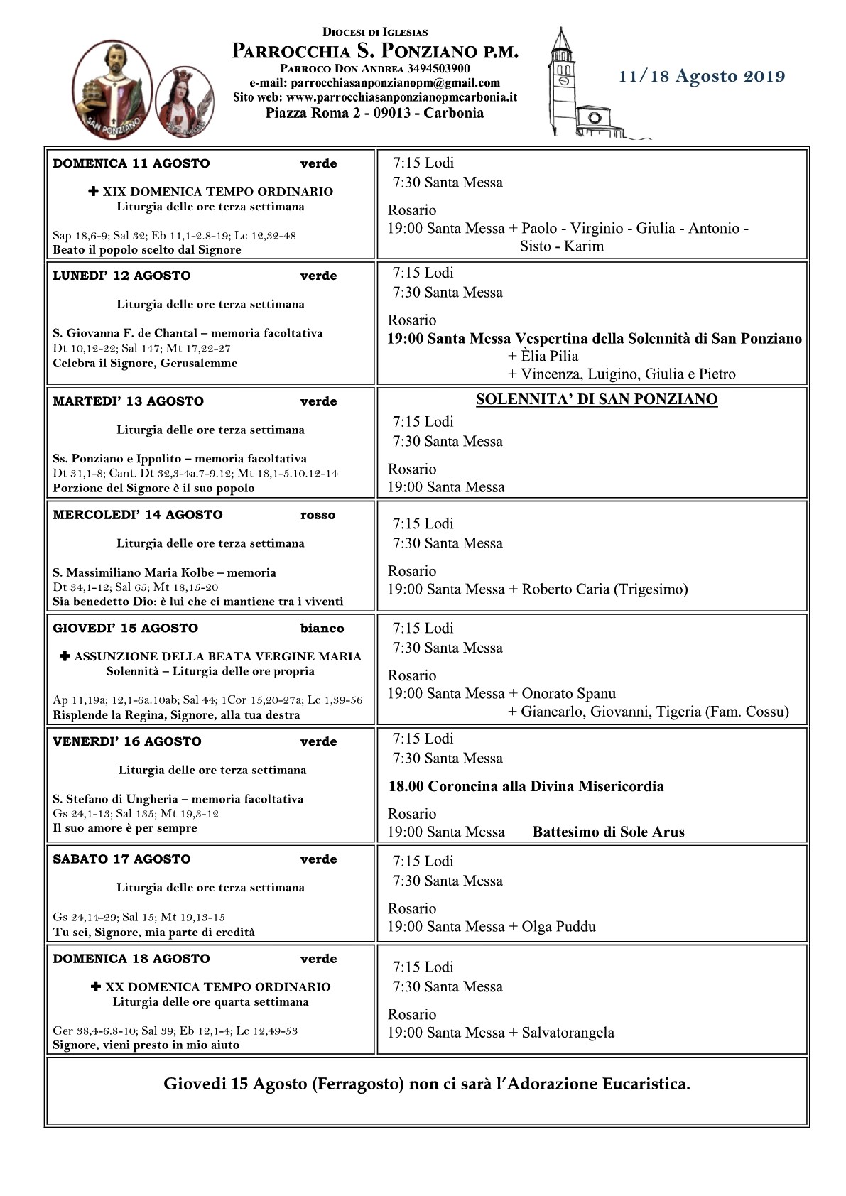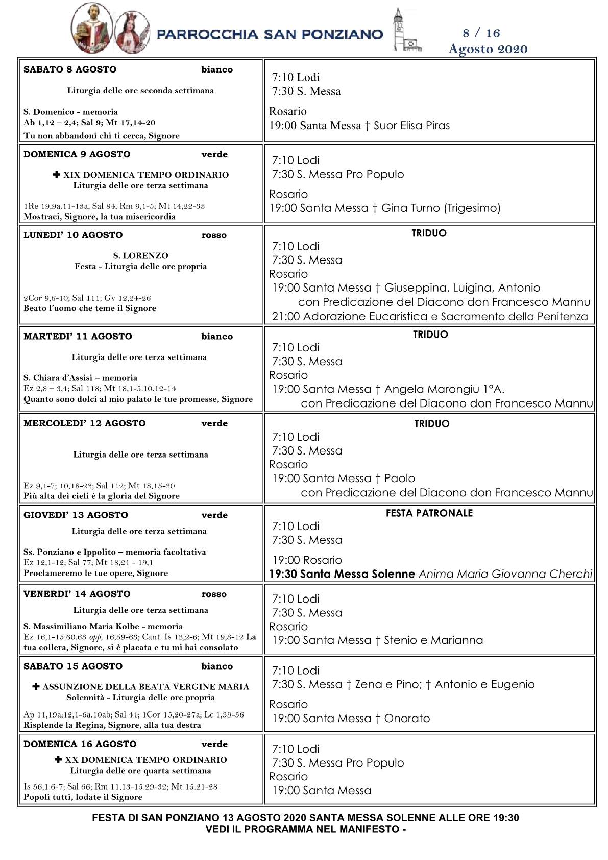 Avvisi della settimana (vedi programma incontri del mese Febbraio 2020 in bacheca)