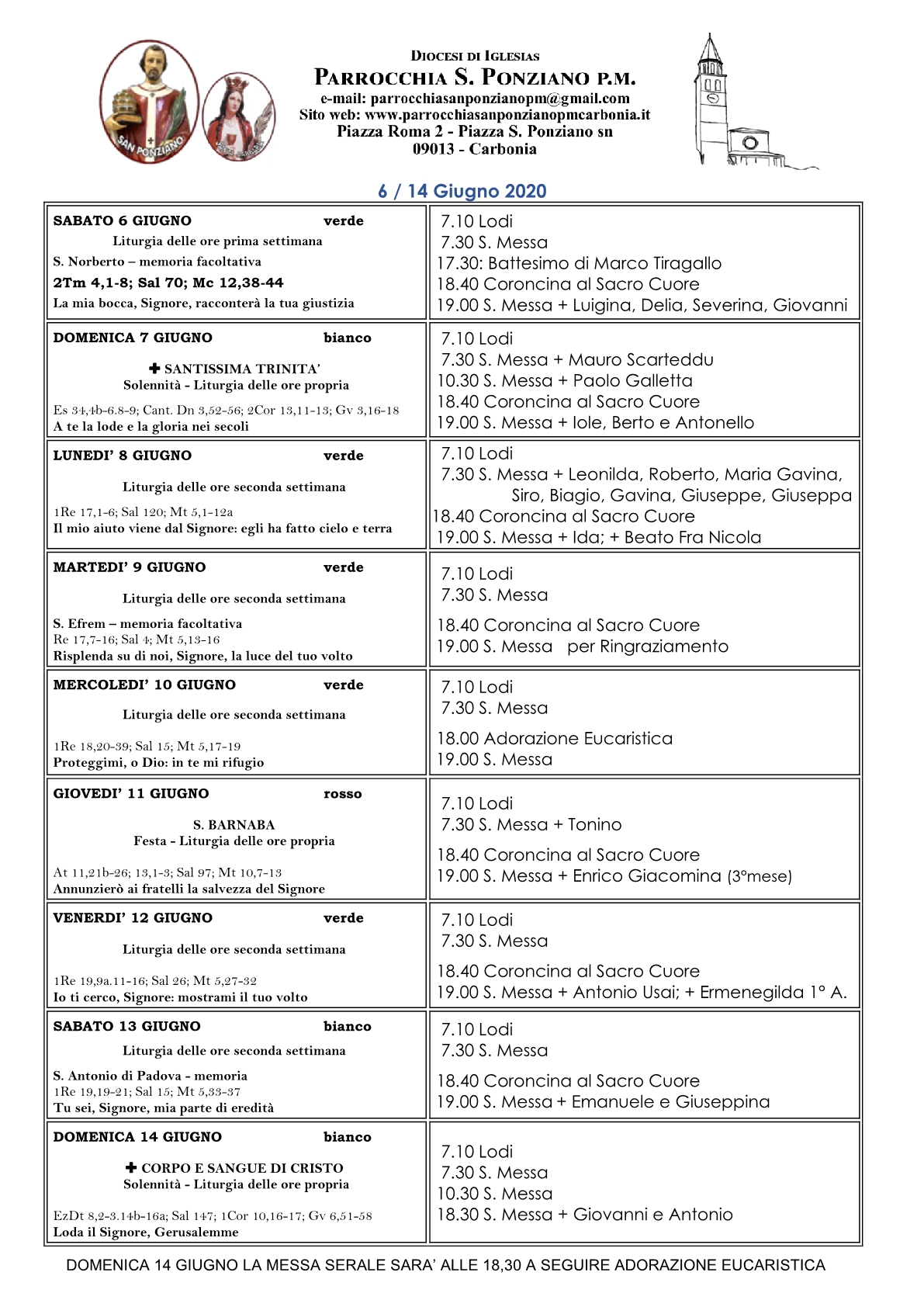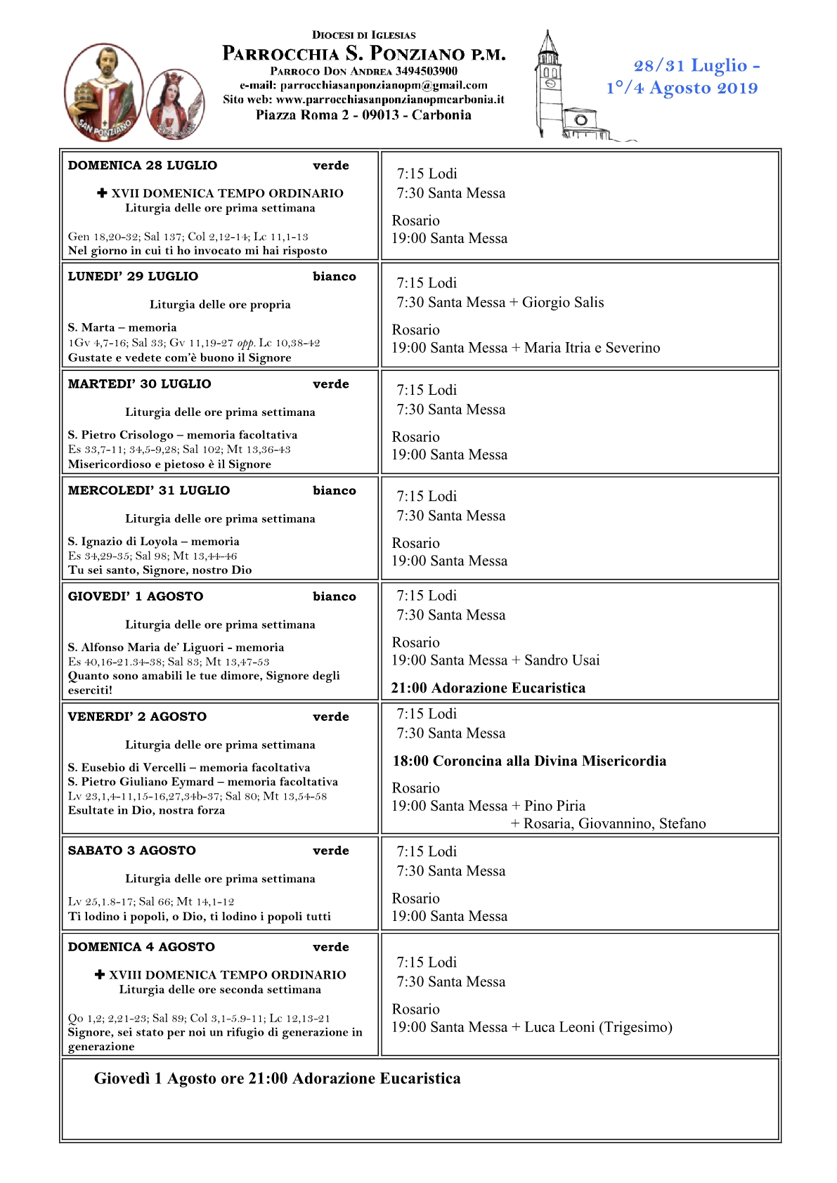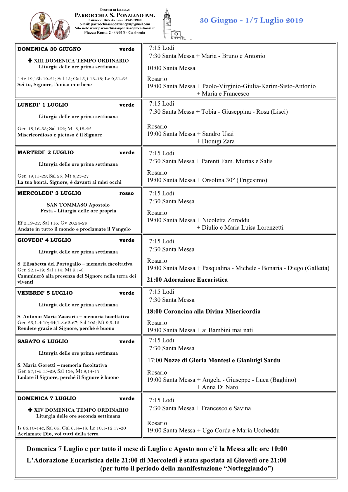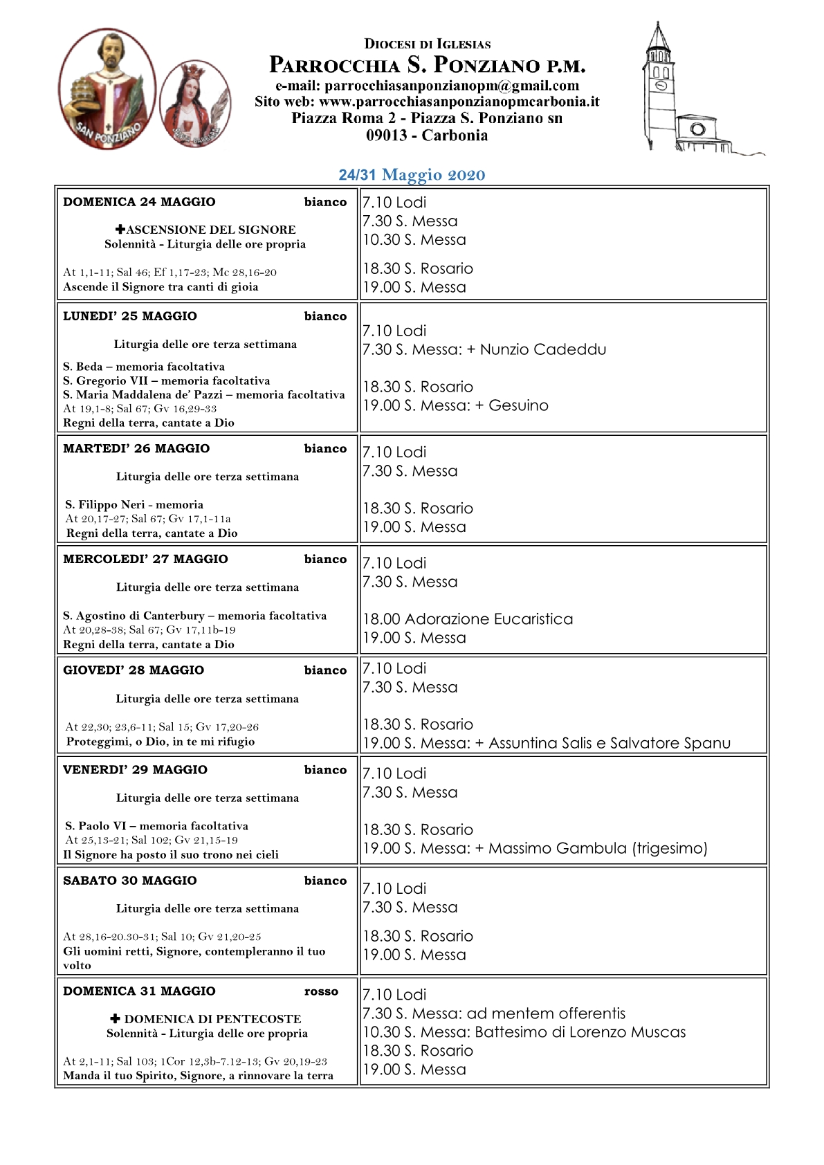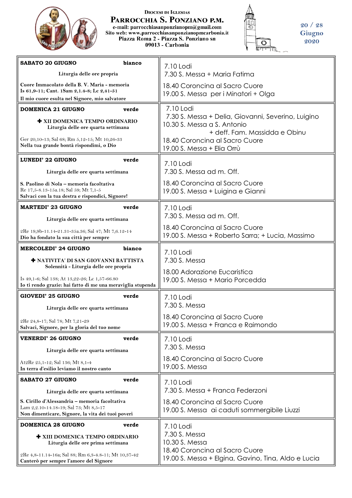 Avvisi della settimana (vedi programma incontri del mese Febbraio 2020 in bacheca)