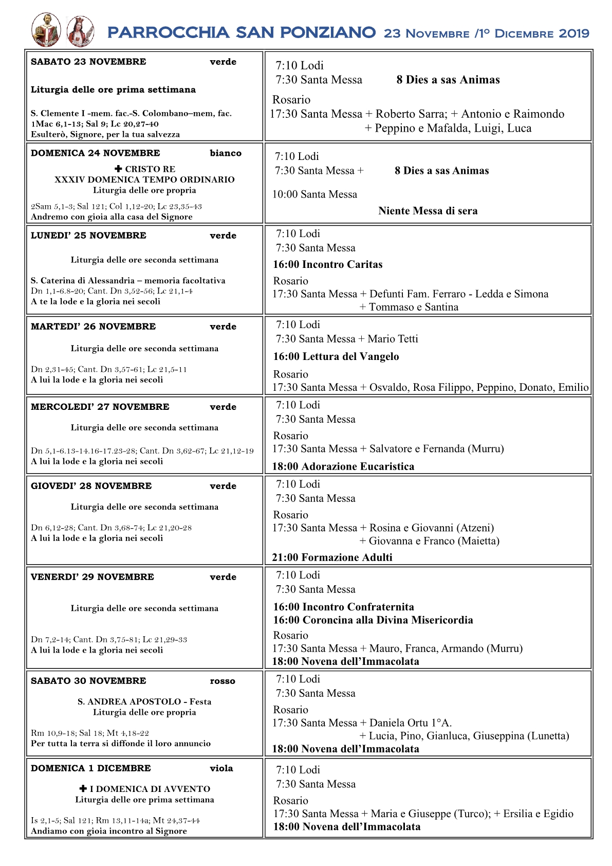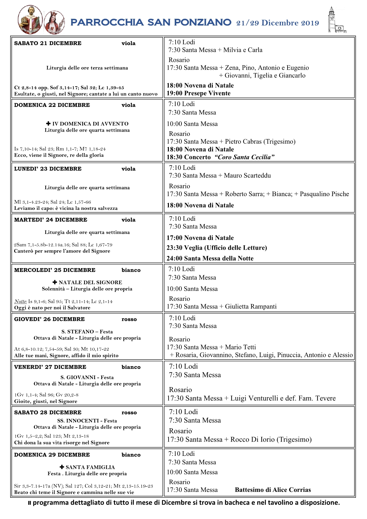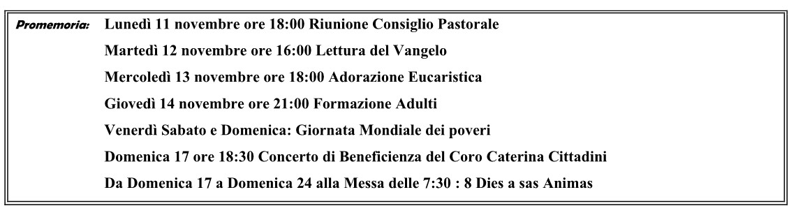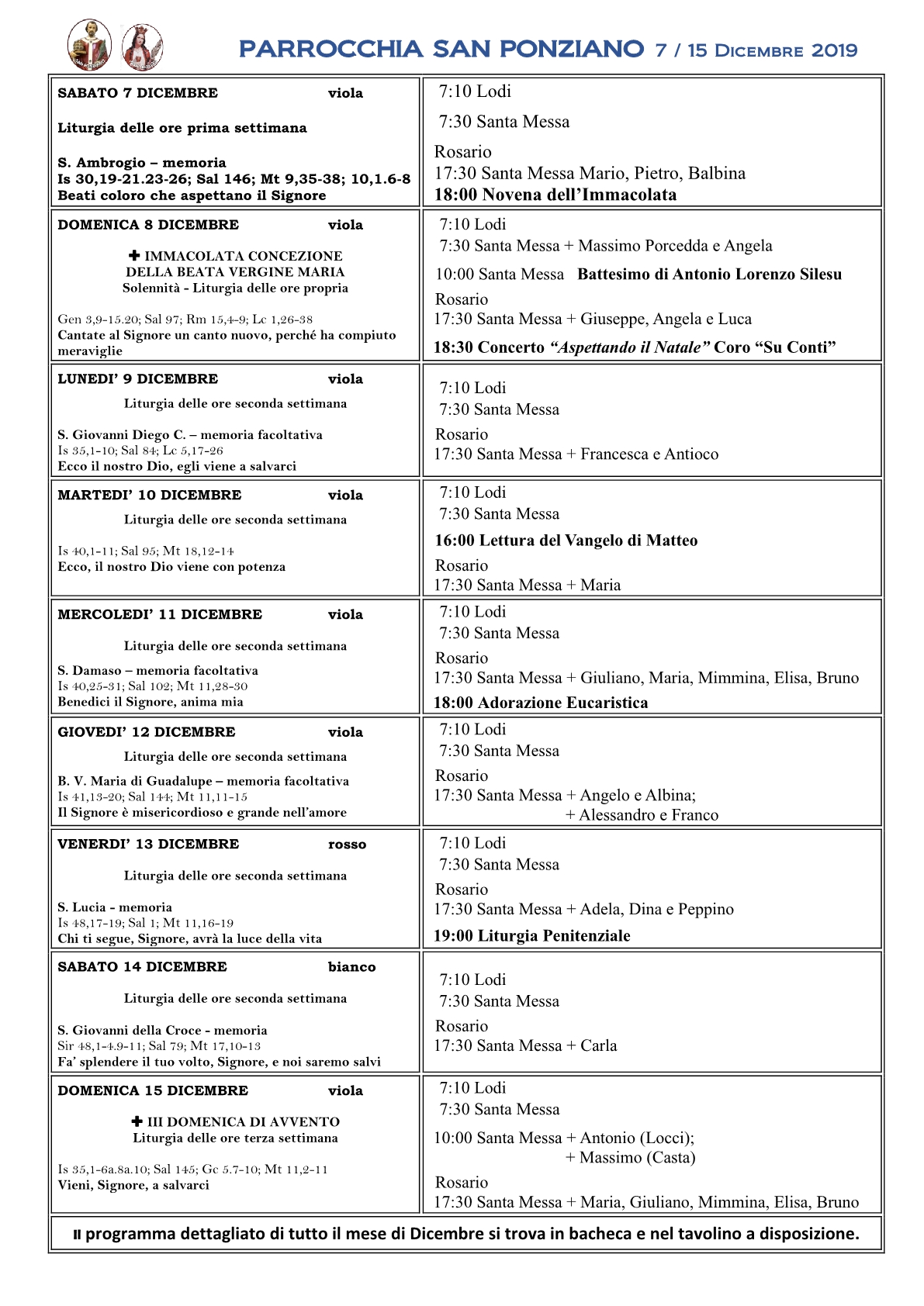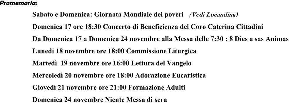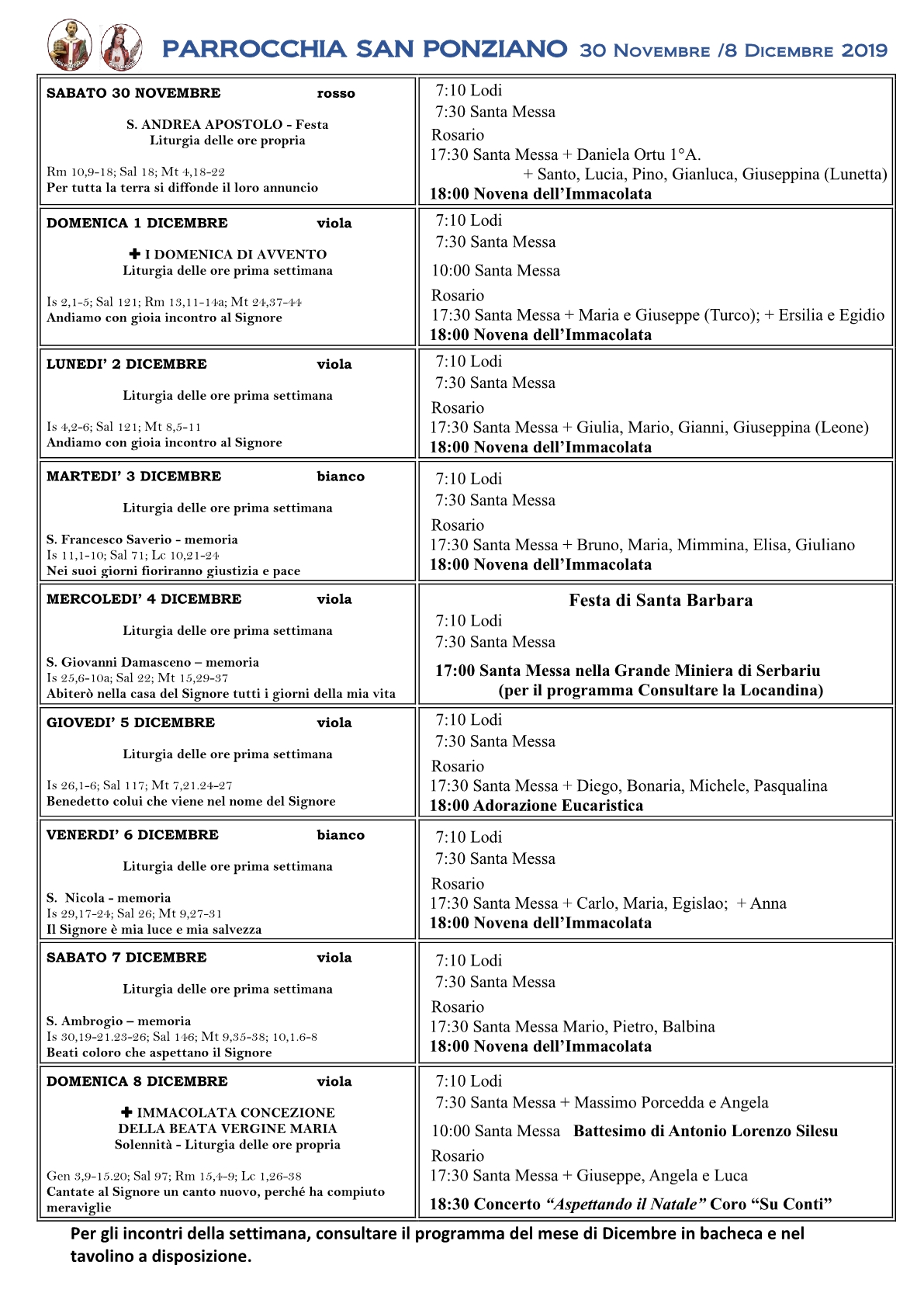 Avvisi della settimana (vedi programma incontri del mese Dicembre in bacheca)