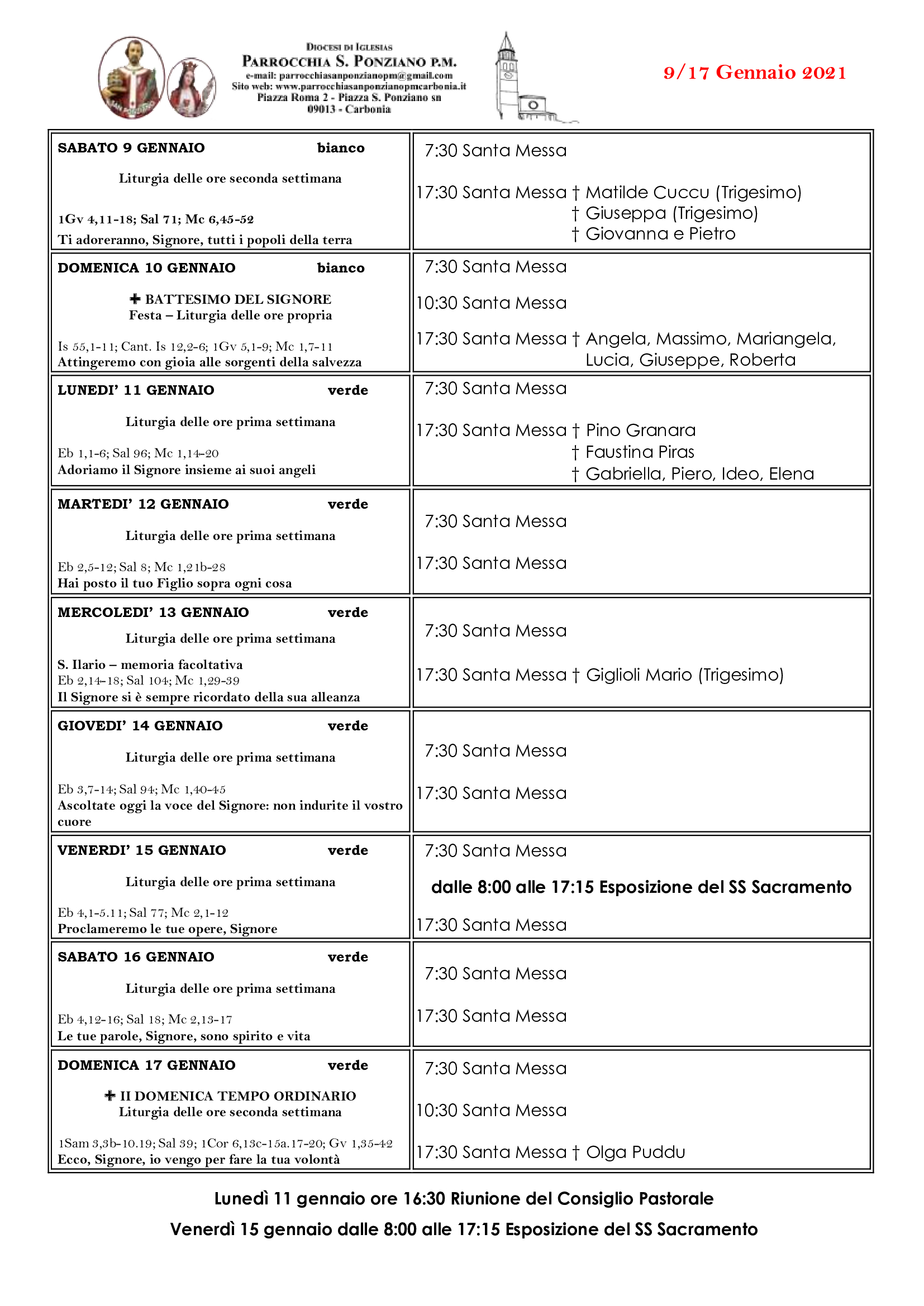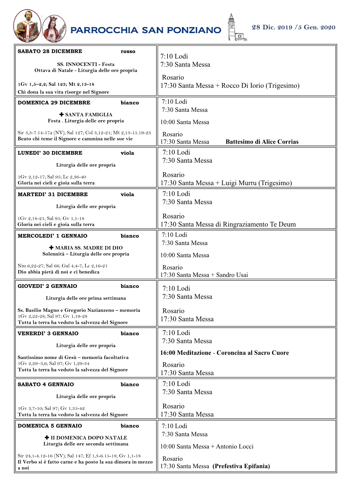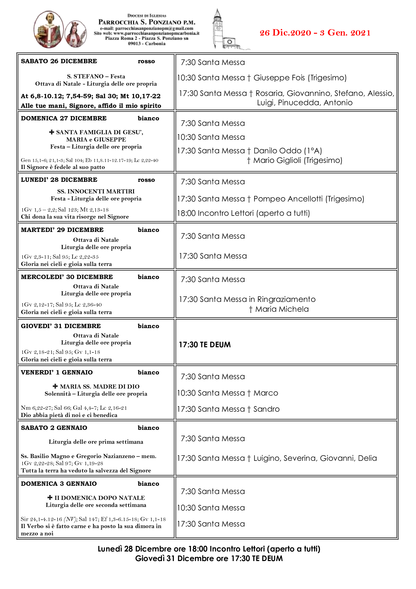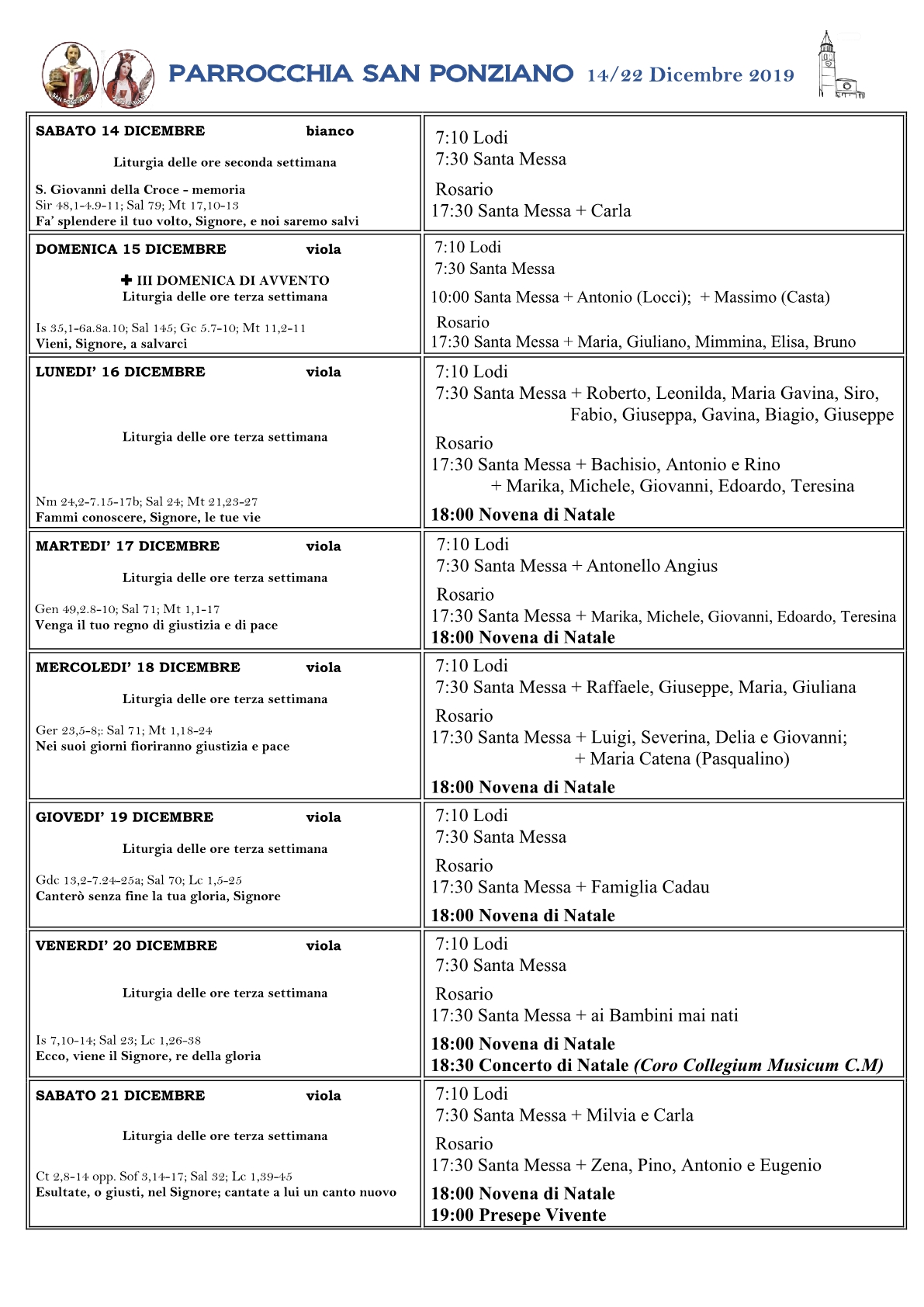 Avvisi della settimana (vedi programma incontri del mese Dicembre in bacheca)