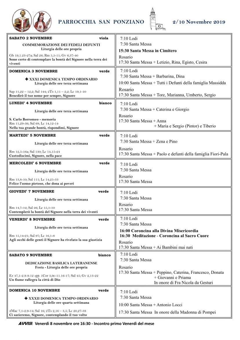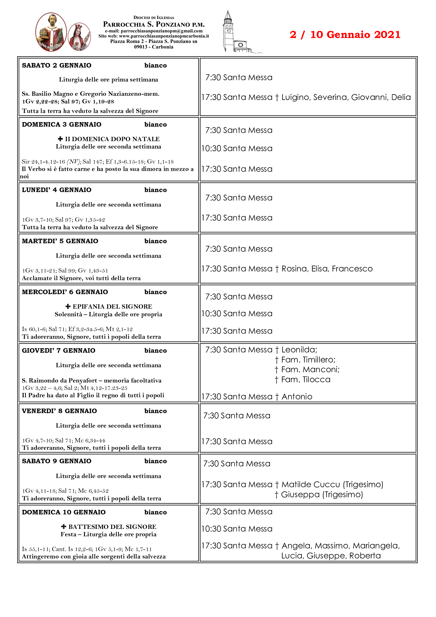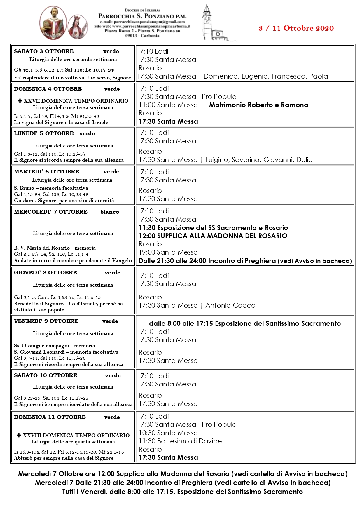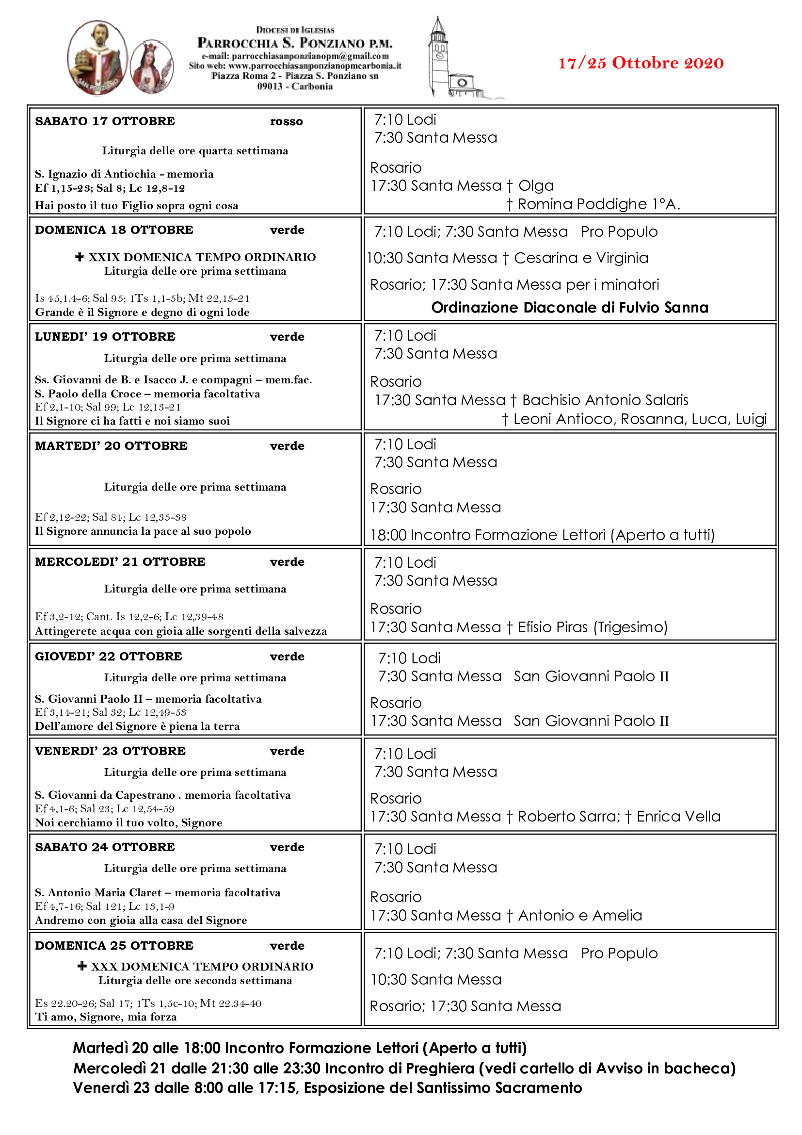 Avvisi della settimana (vedi programma incontri del mese Dicembre in bacheca)