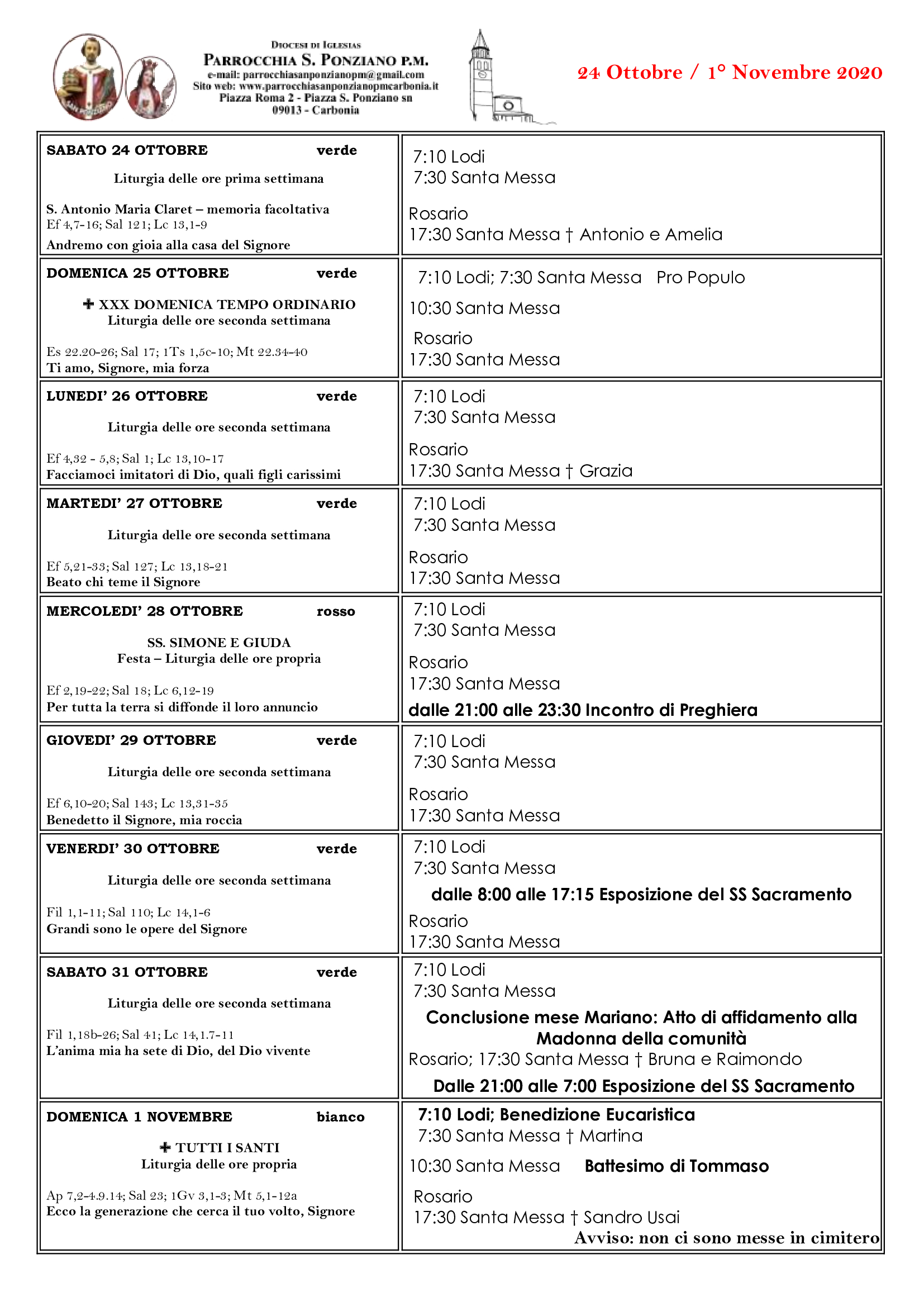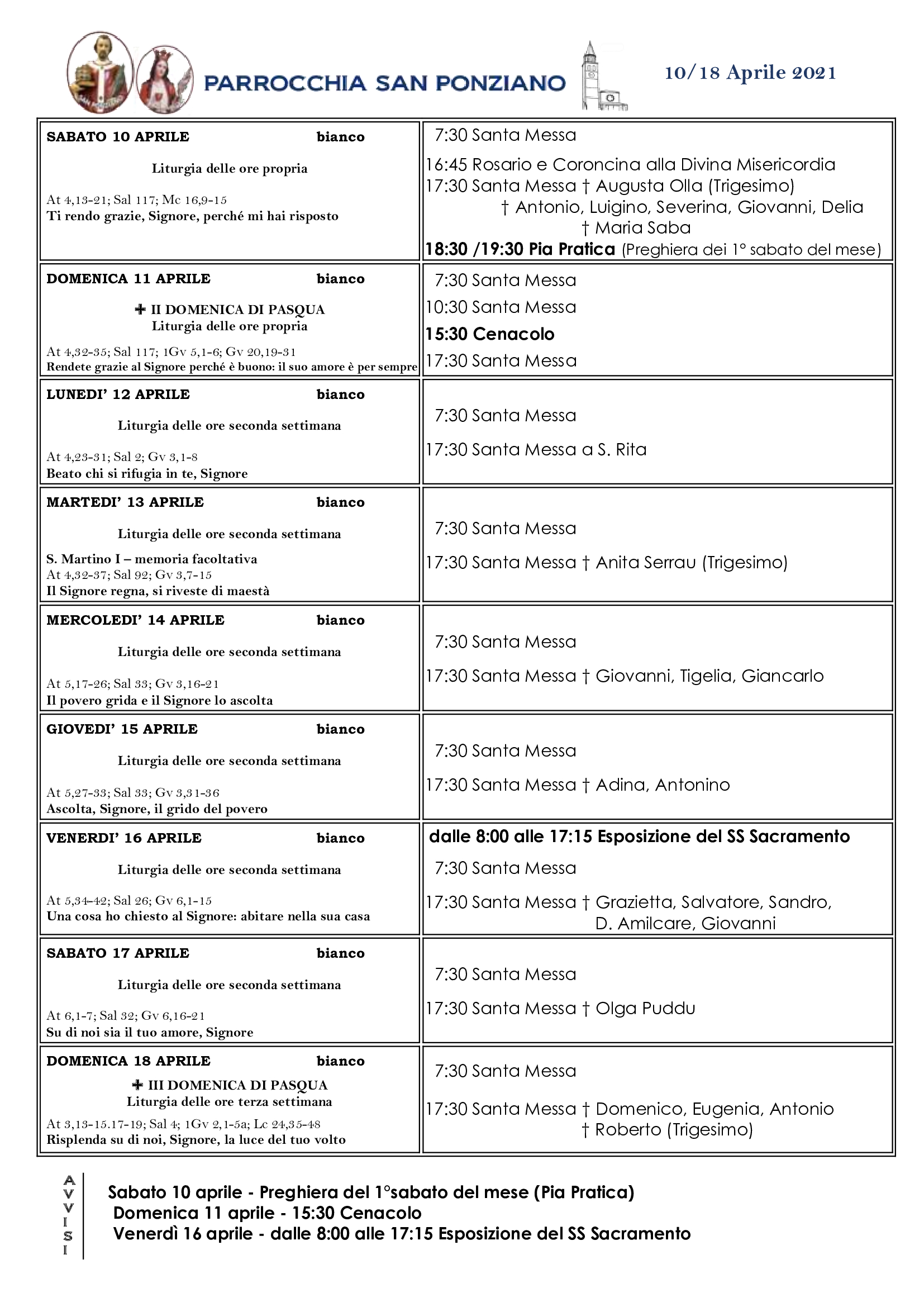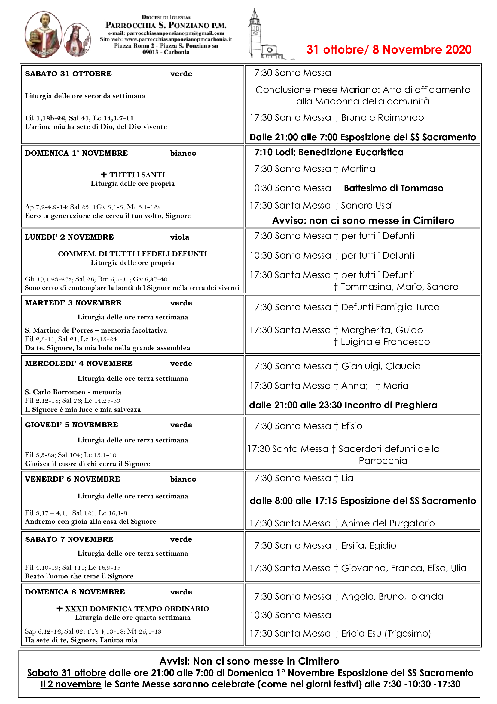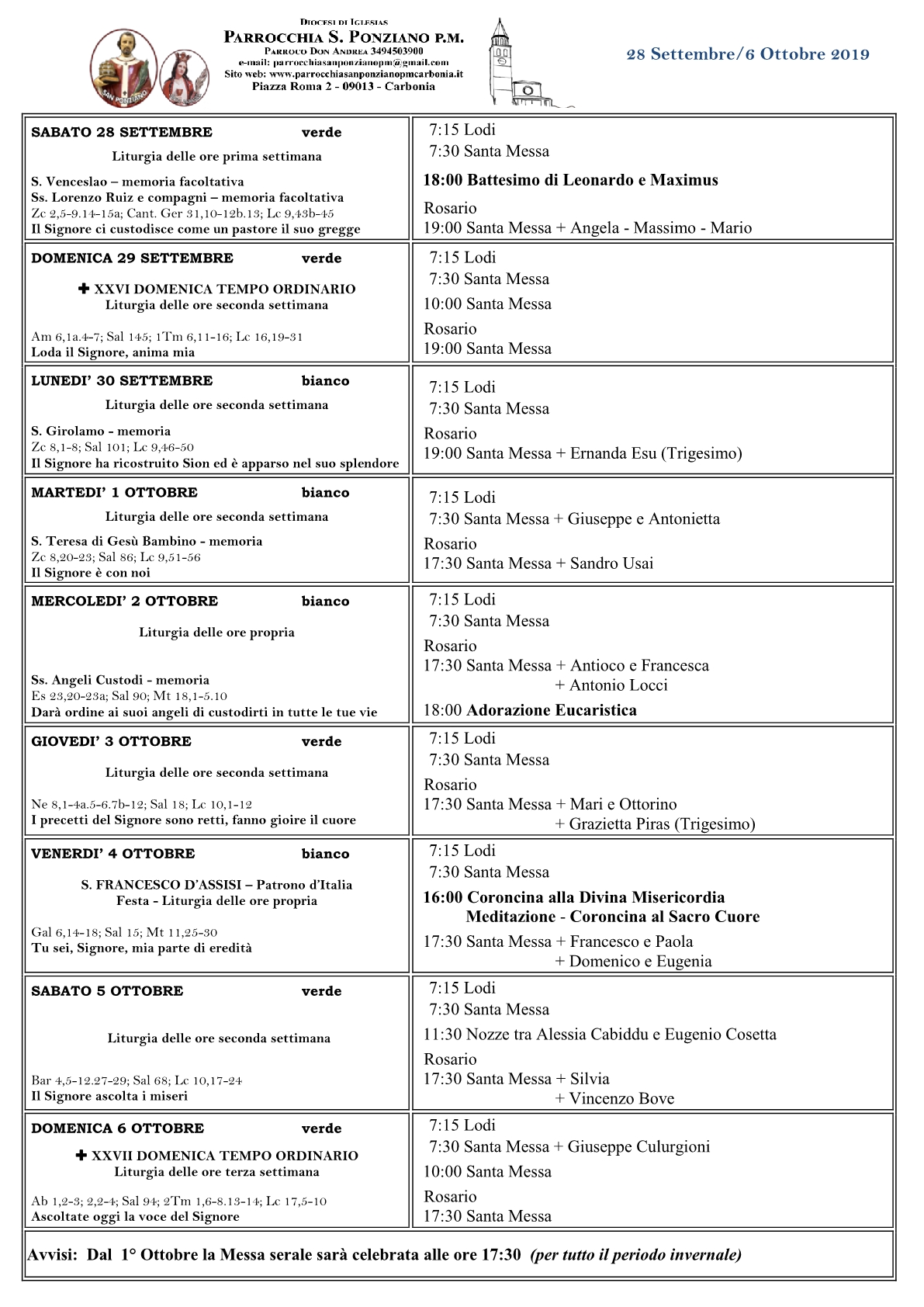 Avvisi della settimana (vedi programma incontri del mese Dicembre in bacheca)