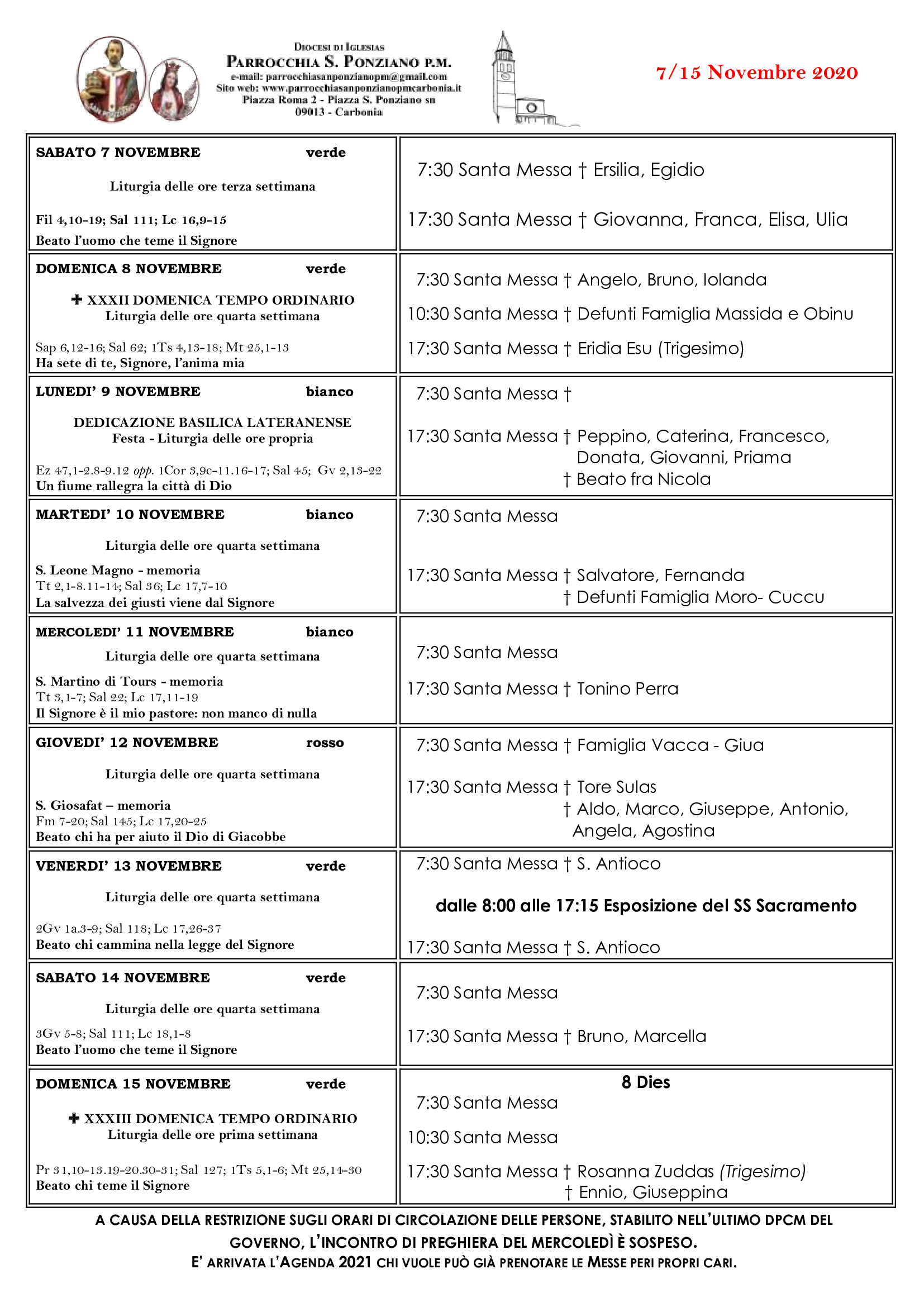 L’incontro della Commissione Liturgica di Lunedì 18 novembre è anticipato alle ore 16:00