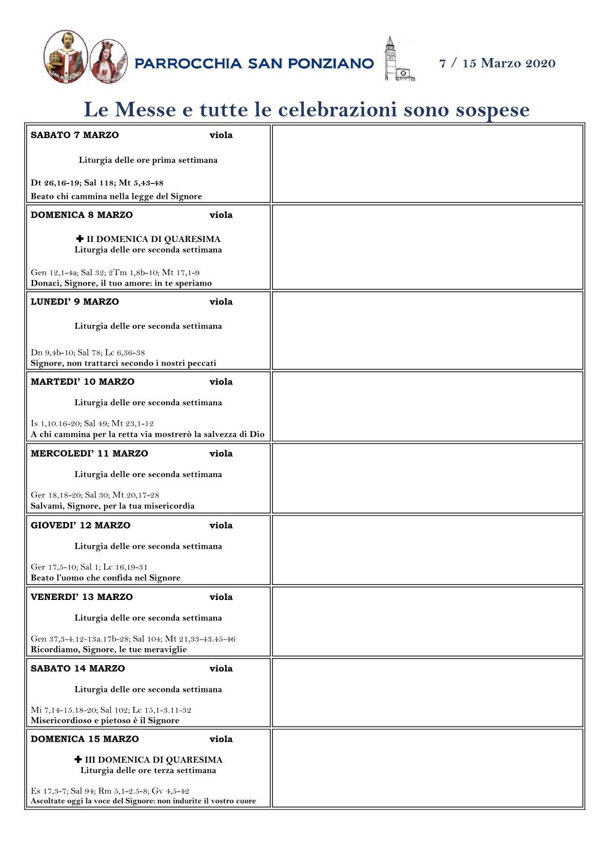Le Messe e tutte le celebrazioni sono momentaneamente sospese